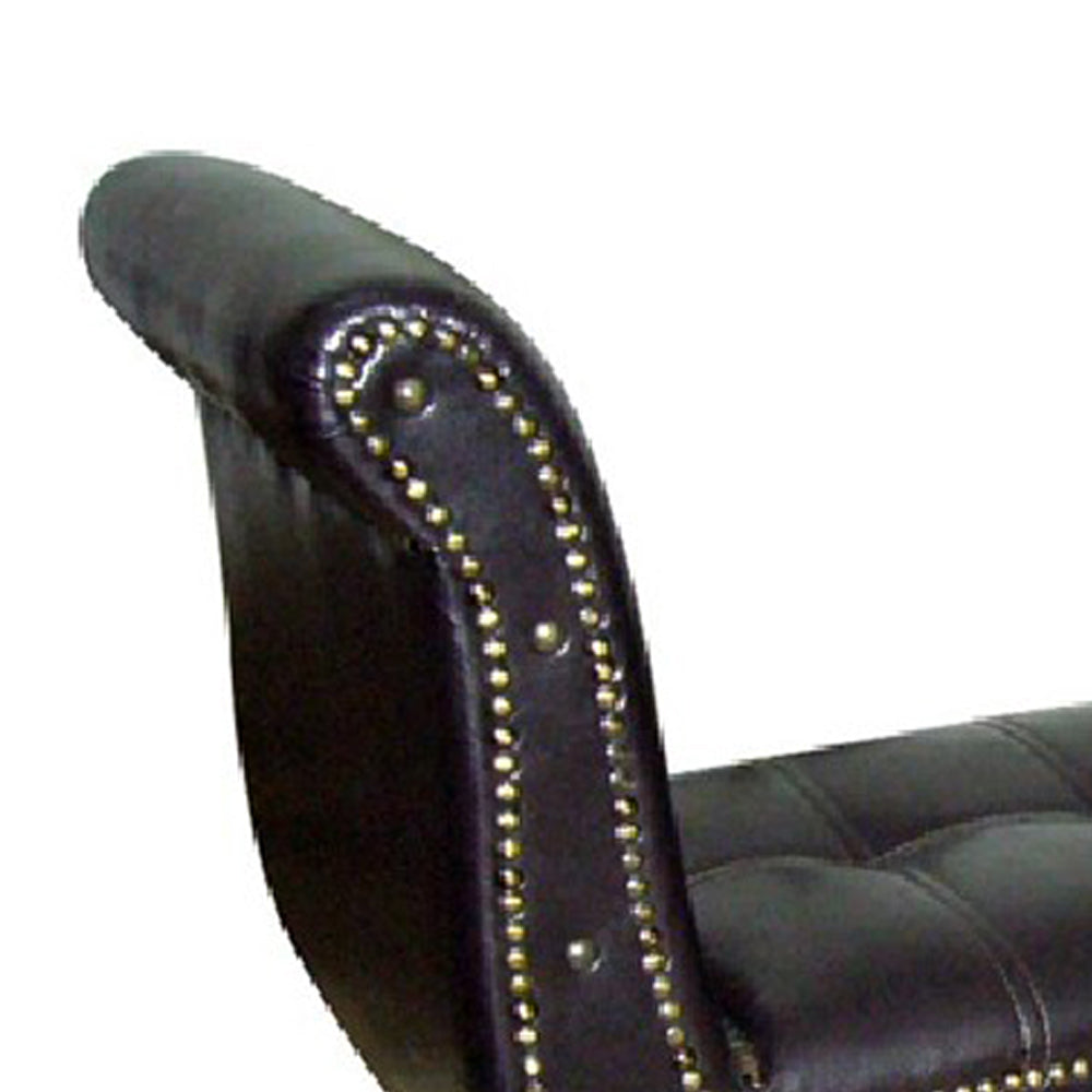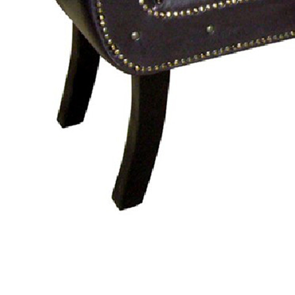 Benzara BM94736 Nailhead Trim Leatherette Bench with Flared Shelter Arms, Dark Brown