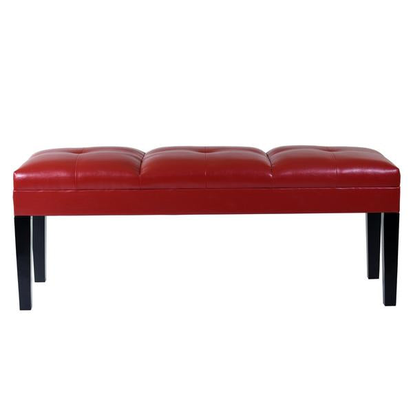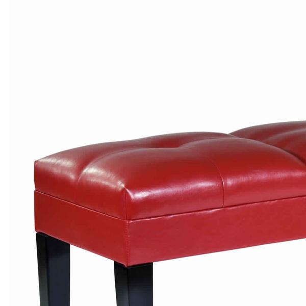 Benzara Bonded Leather Padded Bench with Button Tufted Details, Red and Black