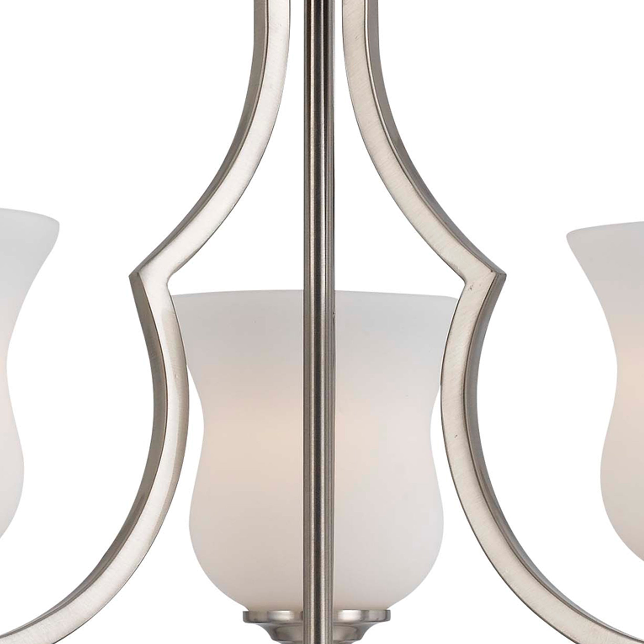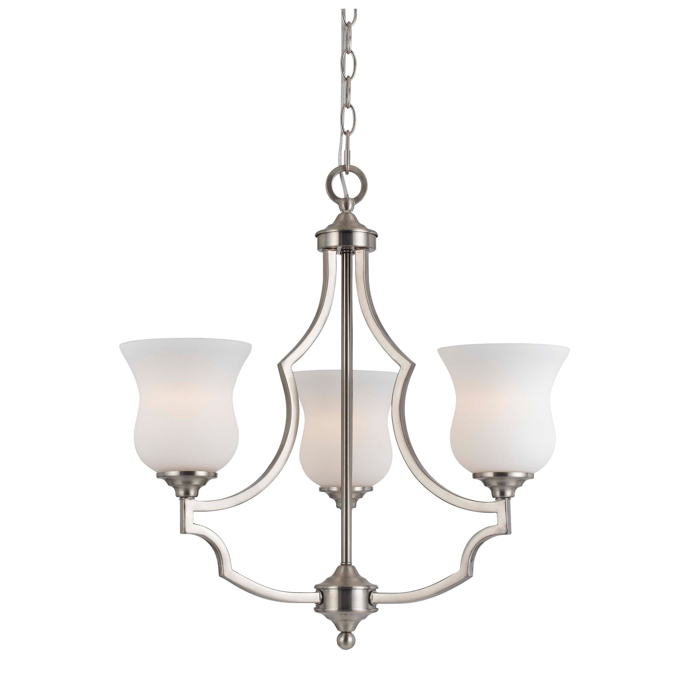 Benzara 3 Bulb Uplight Chandelier with Metal Frame and Glass Shades,Silver and White