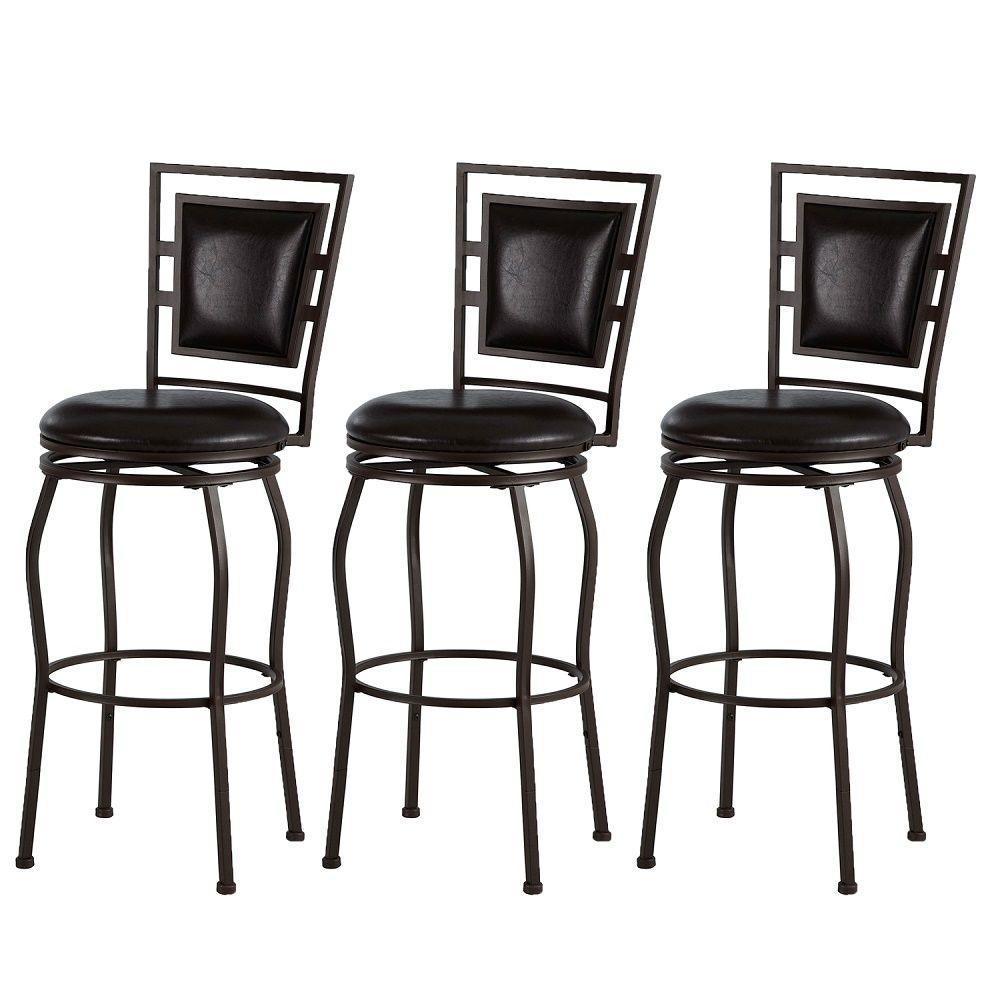 Benzara 3 Piece Metal Adjustable Stool with Cushioned Seat and Backrest, Brown