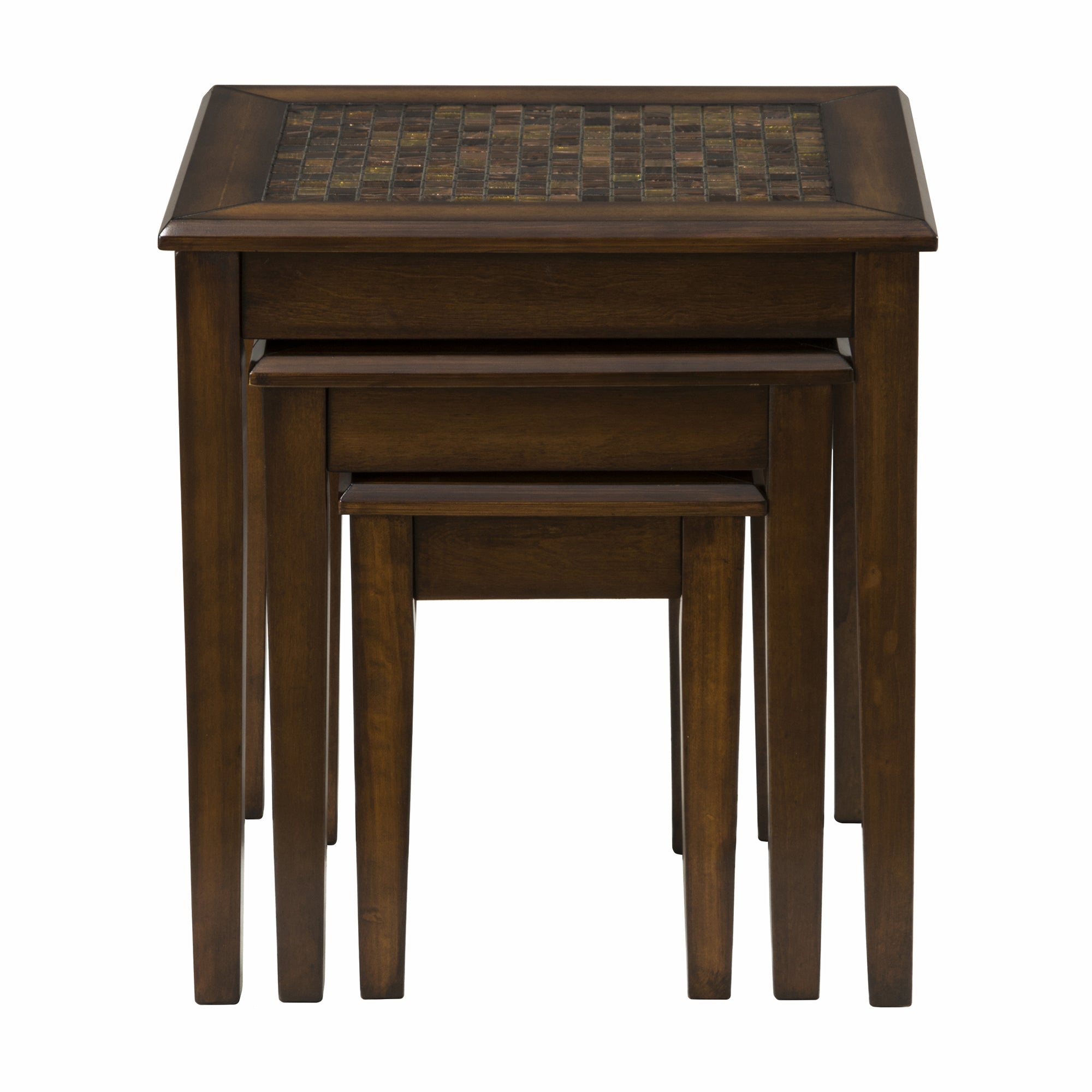 Benzara 3 Piece Nesting Chairside Table with Mosaic Tile Inlay, Baroque Brown