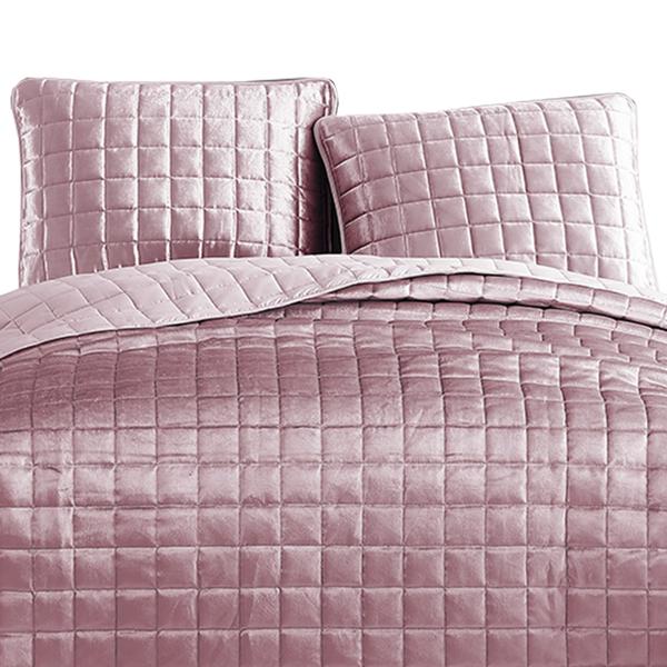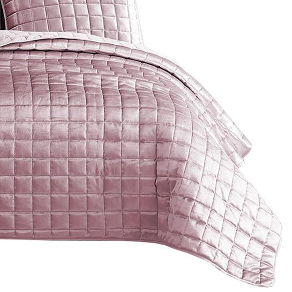 Accentuate your bedroom with this cozy Queen size Coverlet set that includes 1 quilt and 2 pillow shams. Made from pink in polyester material with elegant stitched details forming a square pattern that gives an appealing look. It is safe to toss in the washing machine for effortless upkeep and comfortable companion to your bed.