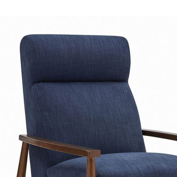 Benzara Fabric Upholstered Push Back Recliner with Tapered Legs, Blue and Brown