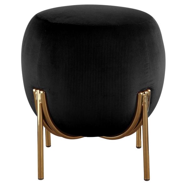 Add a glamorous accent to any space with the inclusion of this stunning round Ottoman in your home. It features a sturdy wooden frame that is covered by the textured black fabric which is soft touching and gives an expensive look. The gold sleek straight metal legs provide ample support, this piece is perfect for extra seating or a comfy place to rest your legs.