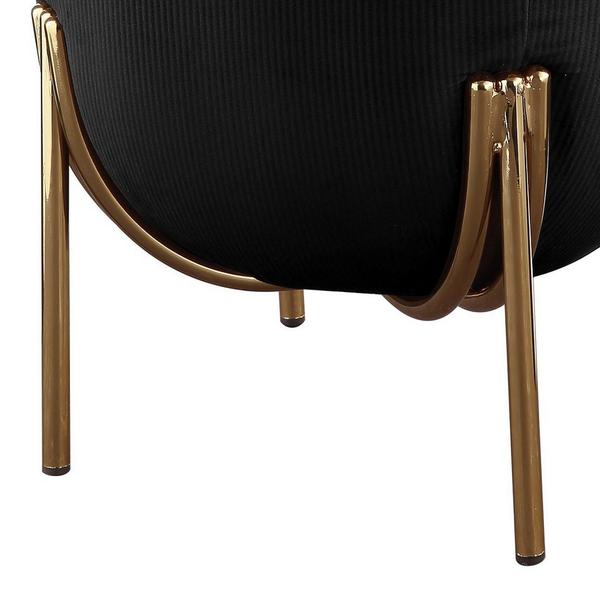 Benzara Fabric Upholstered Round Ottoman with Straight Metal Legs, Black and Gold