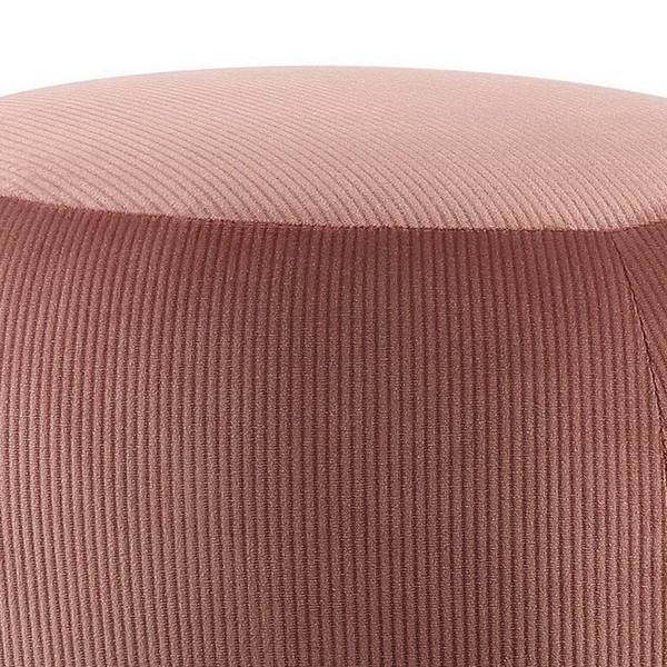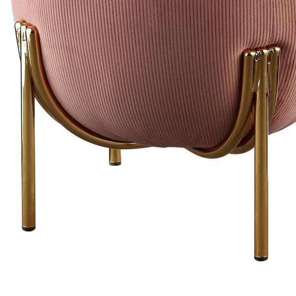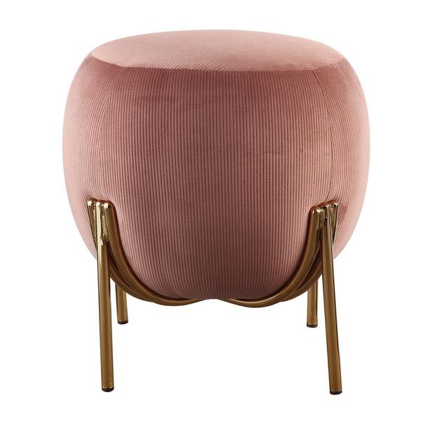 Benzara Fabric Upholstered Round Ottoman with Straight Metal Legs, Pink and Gold