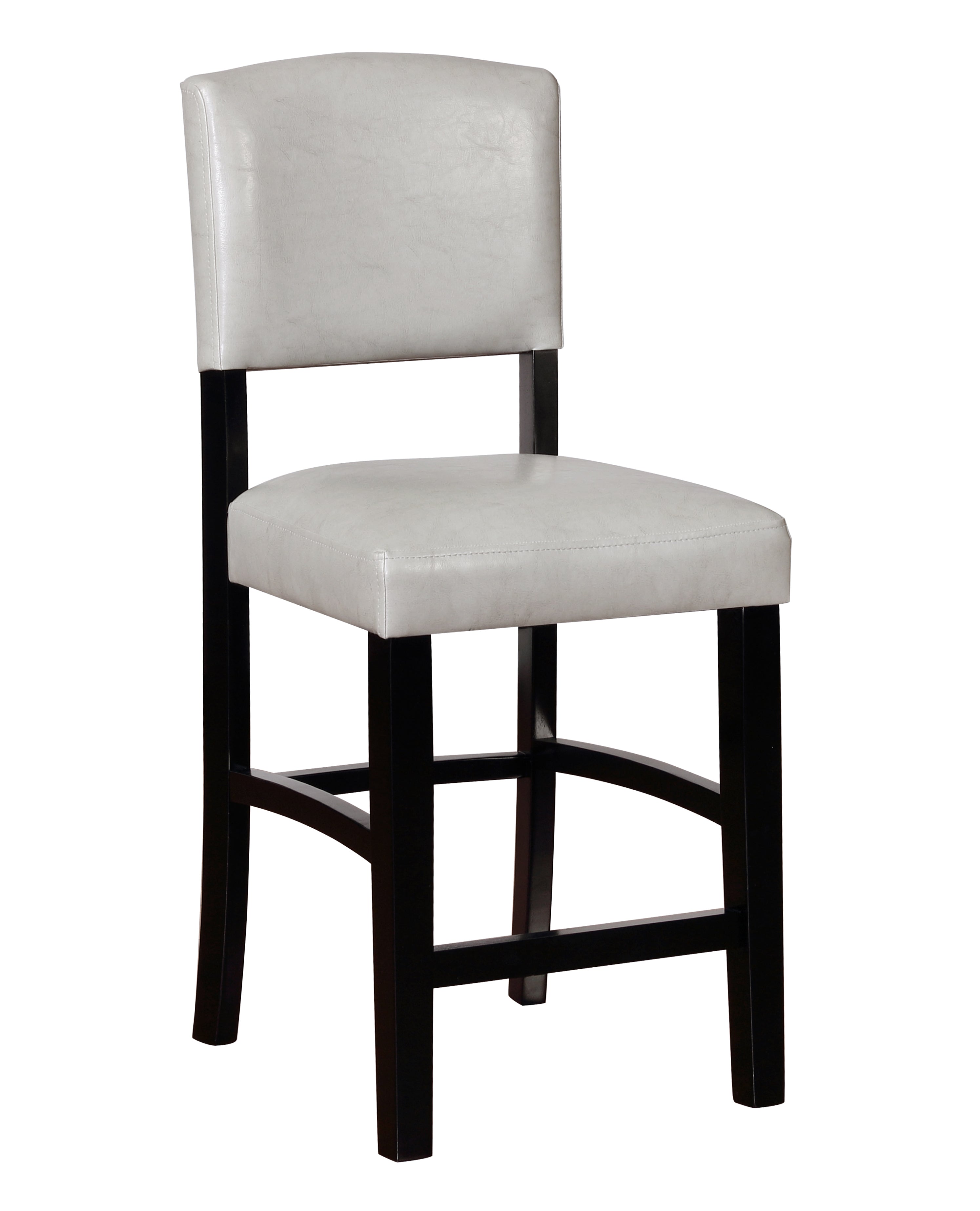 Transfigure the look of your home with this modern style counter stool which features a slightly curved backrest with straight front and flared back legs support for enhanced stability. It is made sturdily from rubberwood in a black finish with foam cushioned, white faux leather upholstered seat and backrest. It will be a great addition to your home and will find a perfect place alongside your kitchen island or bar counter.