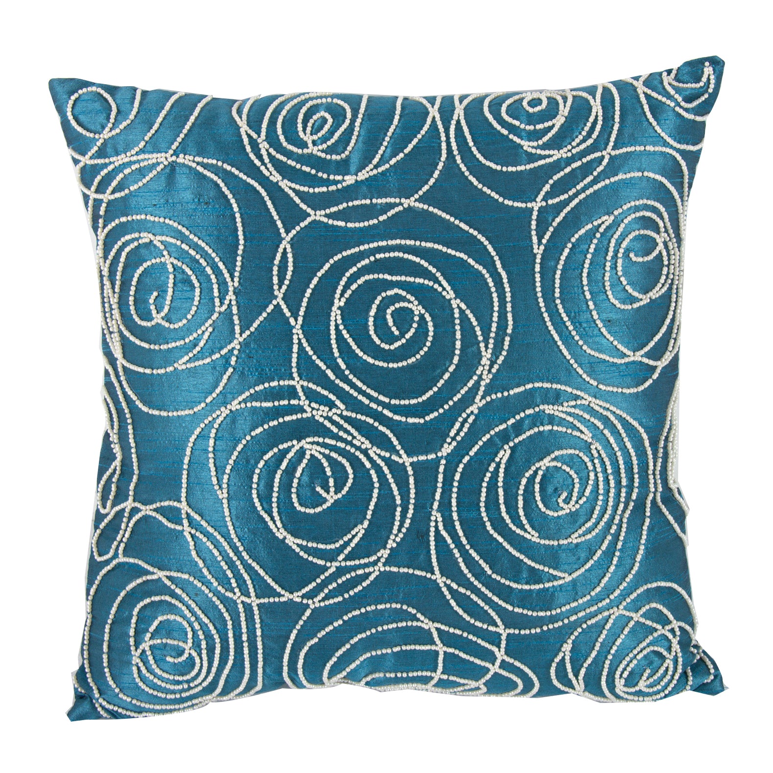 Add a contemporary touch to your bed and sofa with this single piece pillow featuring silver pearl beads embellishment in a spiral pattern and is soft and cozy. It is completely crafted from polyester fiber enveloped in polyester filler cover complemented with cotton cover and is in the hue of vibrant blue. It can be complemented with your bed and your sofa as an accent pillow to get a fuzzy and comfortable experience.