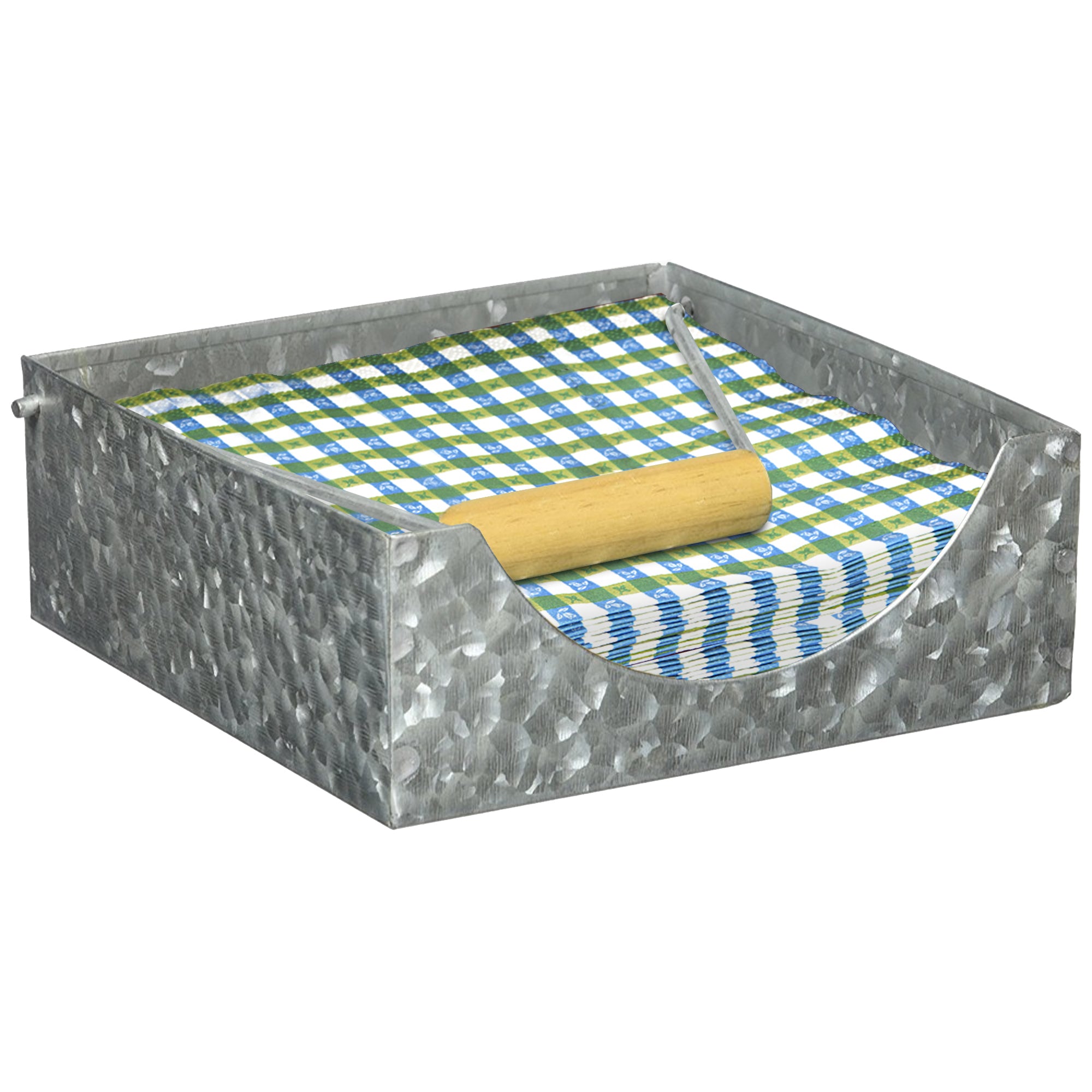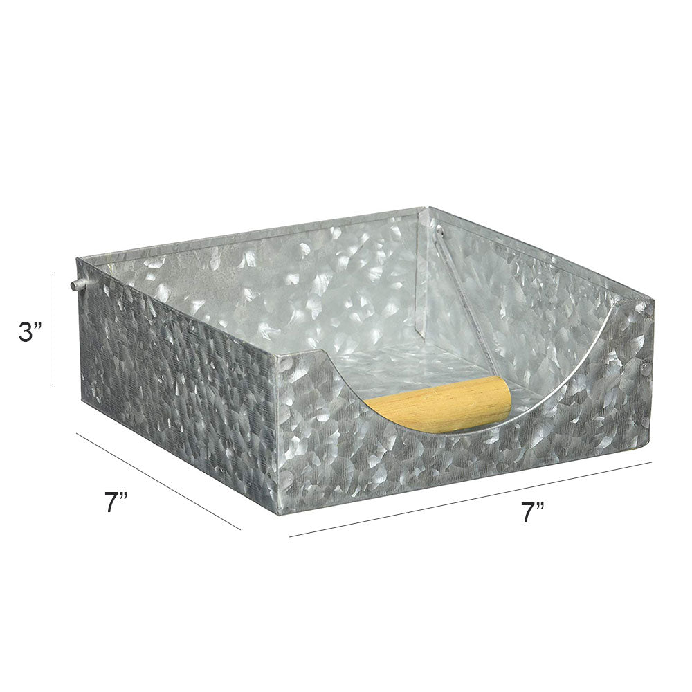 Bring home this Napkin Holder and keep your napkins neatly arranged in one place. Crafted with quality galvanized steel, this napkin holder exudes vintage old country look with the modern charm that adds an elegant touch to the Decor. It is incorporated with a fitted wooden handle to keep the napkins securely down from blowing away. It makes a great addition in your kitchen, dining room, or any living space in your home.
