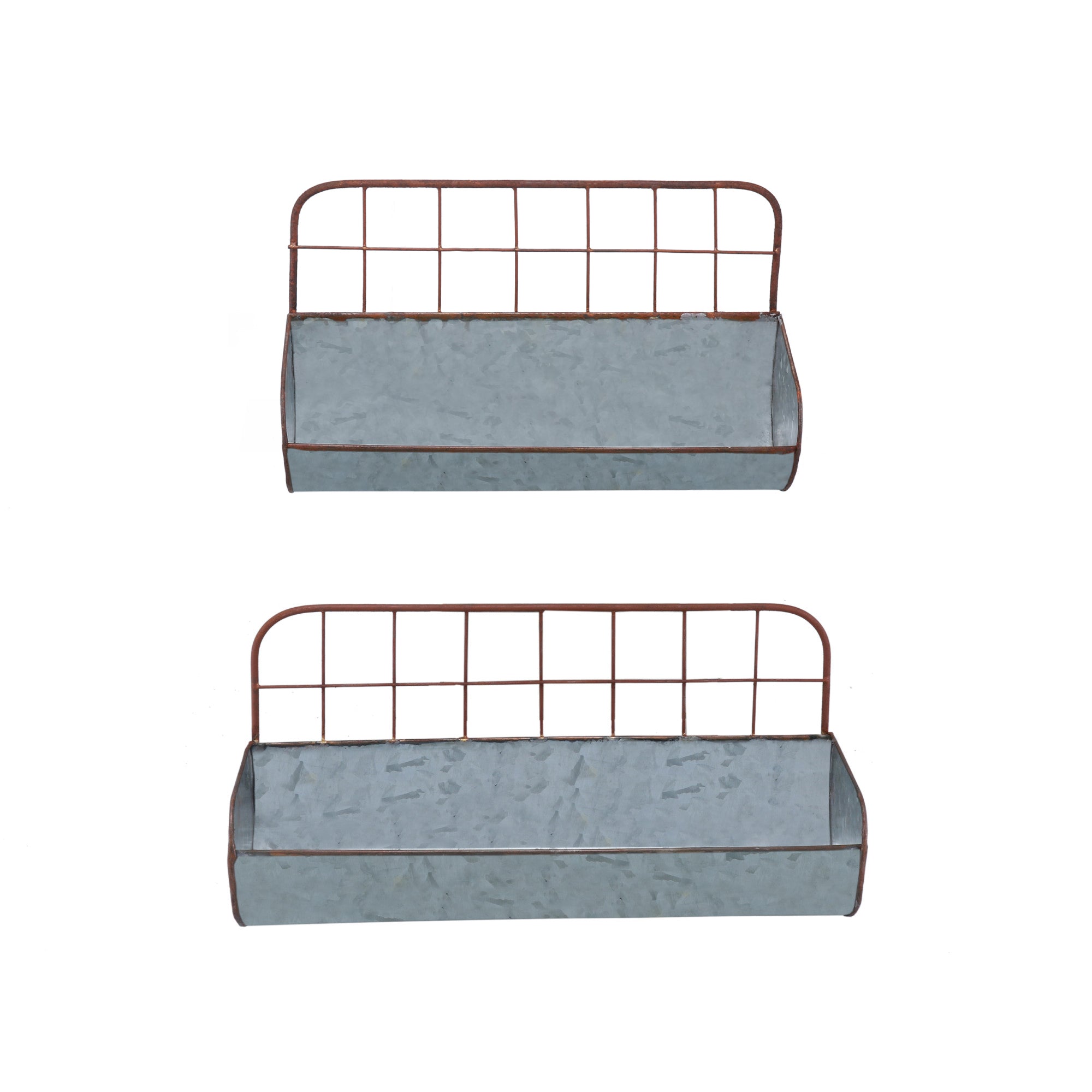 Benzara I305-HGM016 Galvanized Metal Wall Iron Shelves With Wired Back, Set of 2, Gray