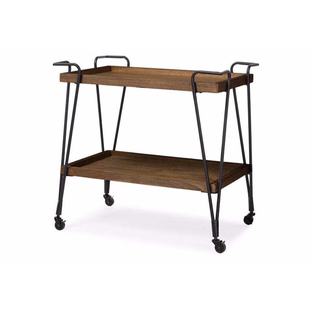 SKU - BZBM140276Industrial Style Ash Wood Mobile Serving Bar Cart Only at Uber Bazaar