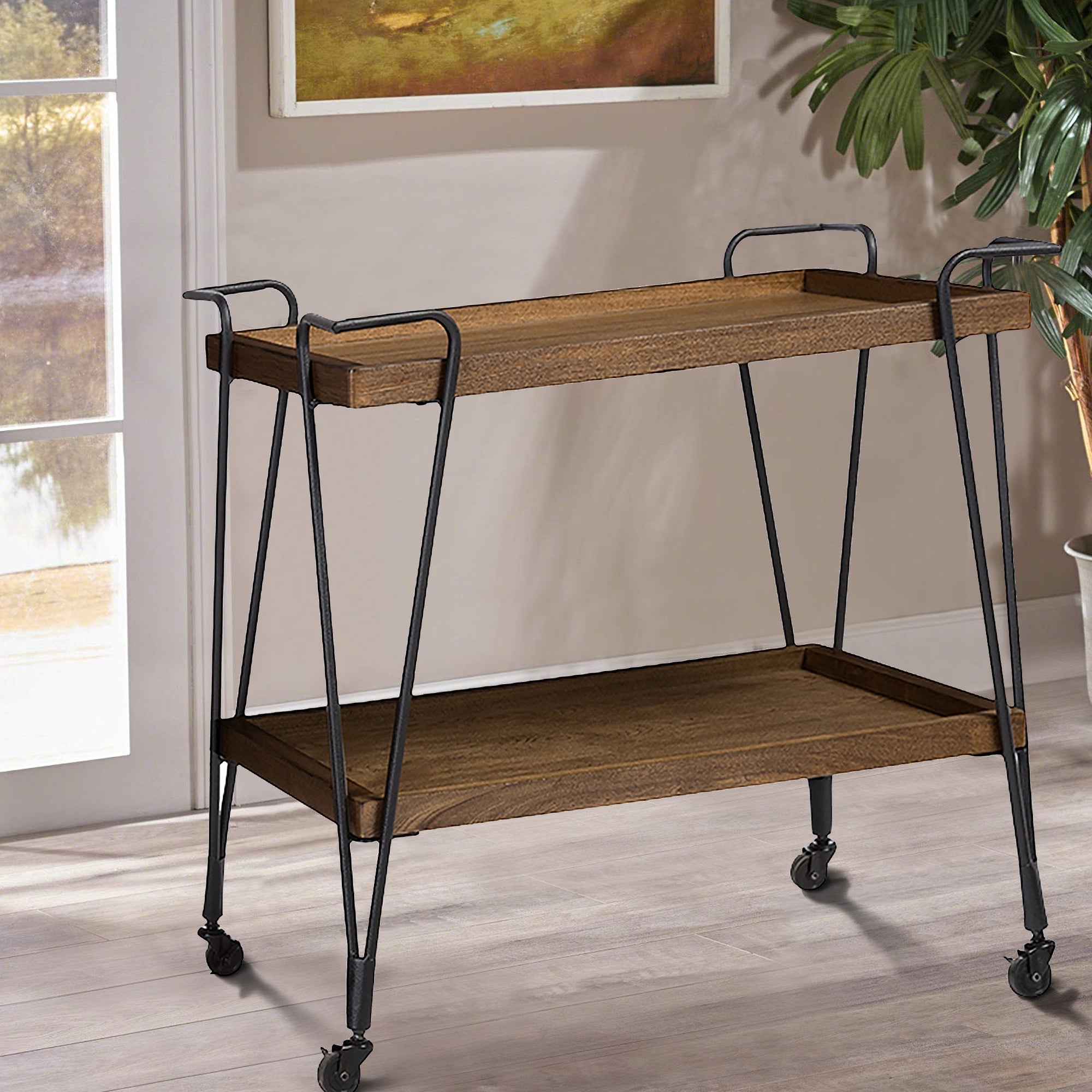 Benzara Industrial Style Ash Wood Mobile Serving Bar Cart, Brown and Black
