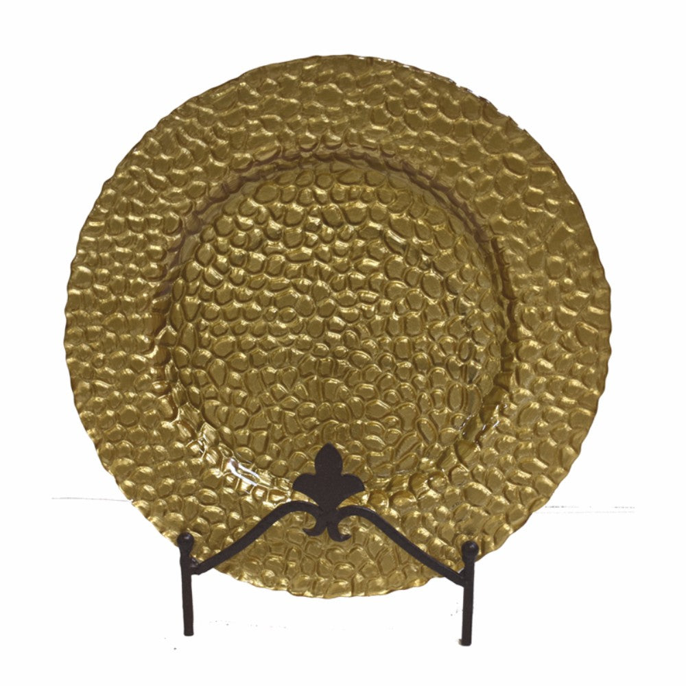 Benzara Intriguing Round Glass Charger Plate, Gold
