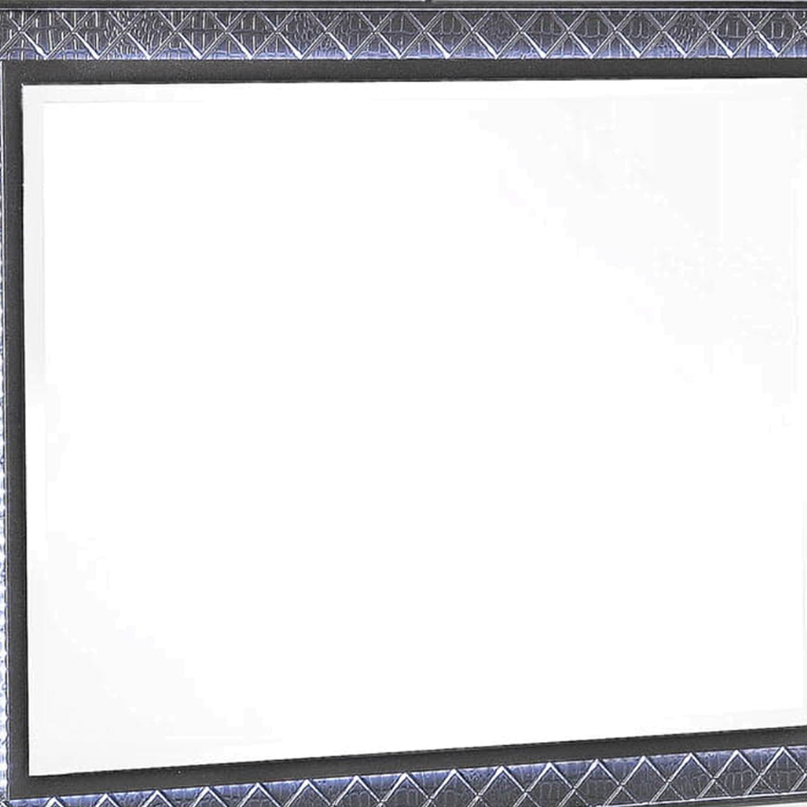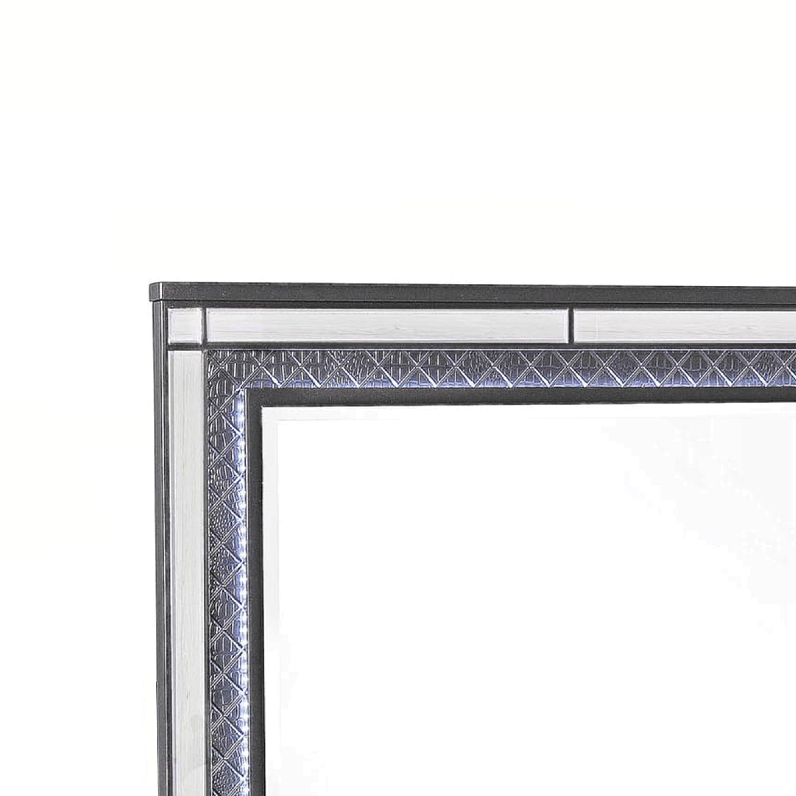 Benzara LED Trim Wooden Frame Mirror with Diamond Pattern, Gray and Silver