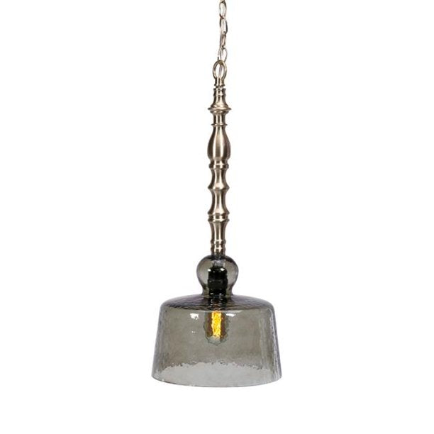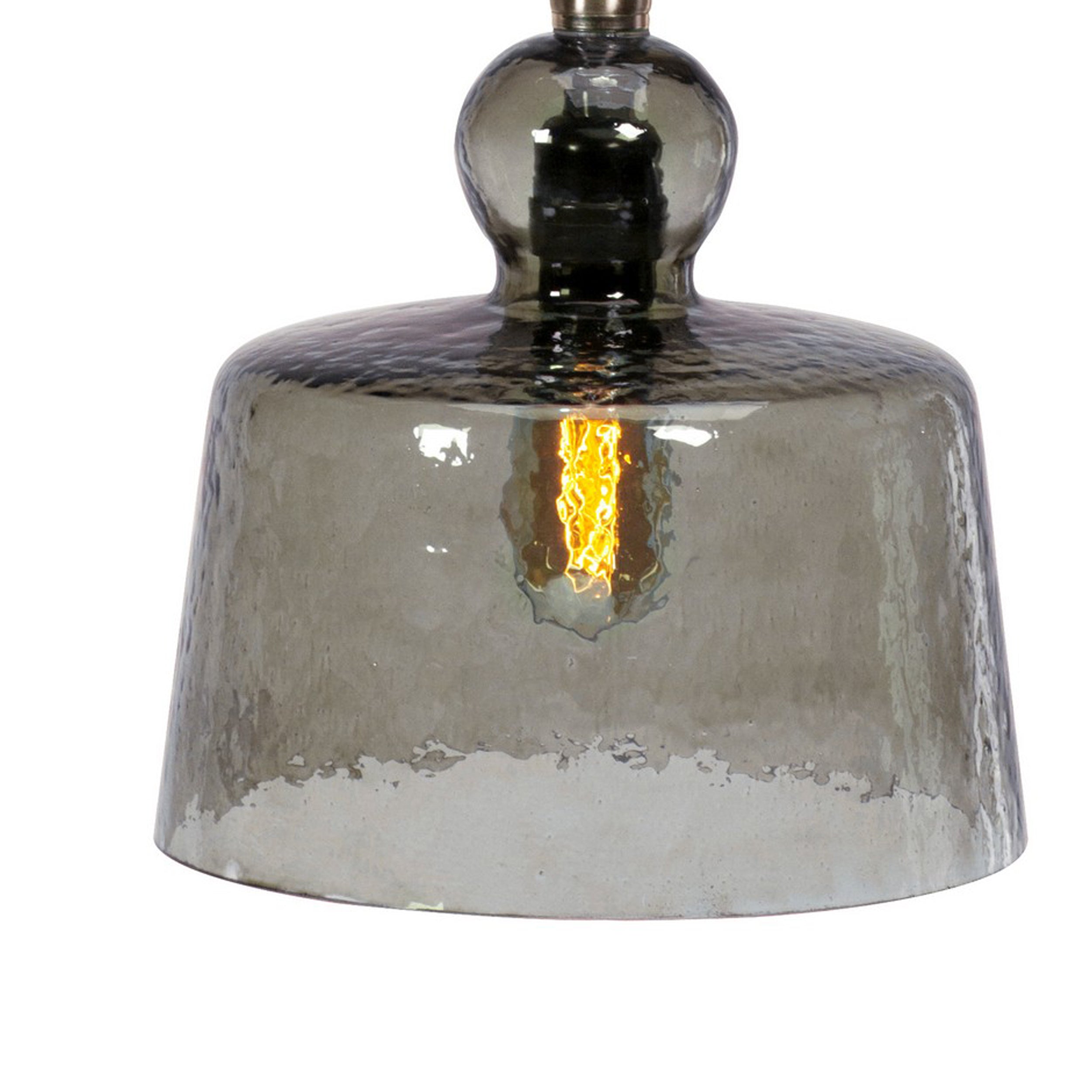 Benzara Metal Pendant Lamp with Frosted Glass Shade, Gray and Silver
