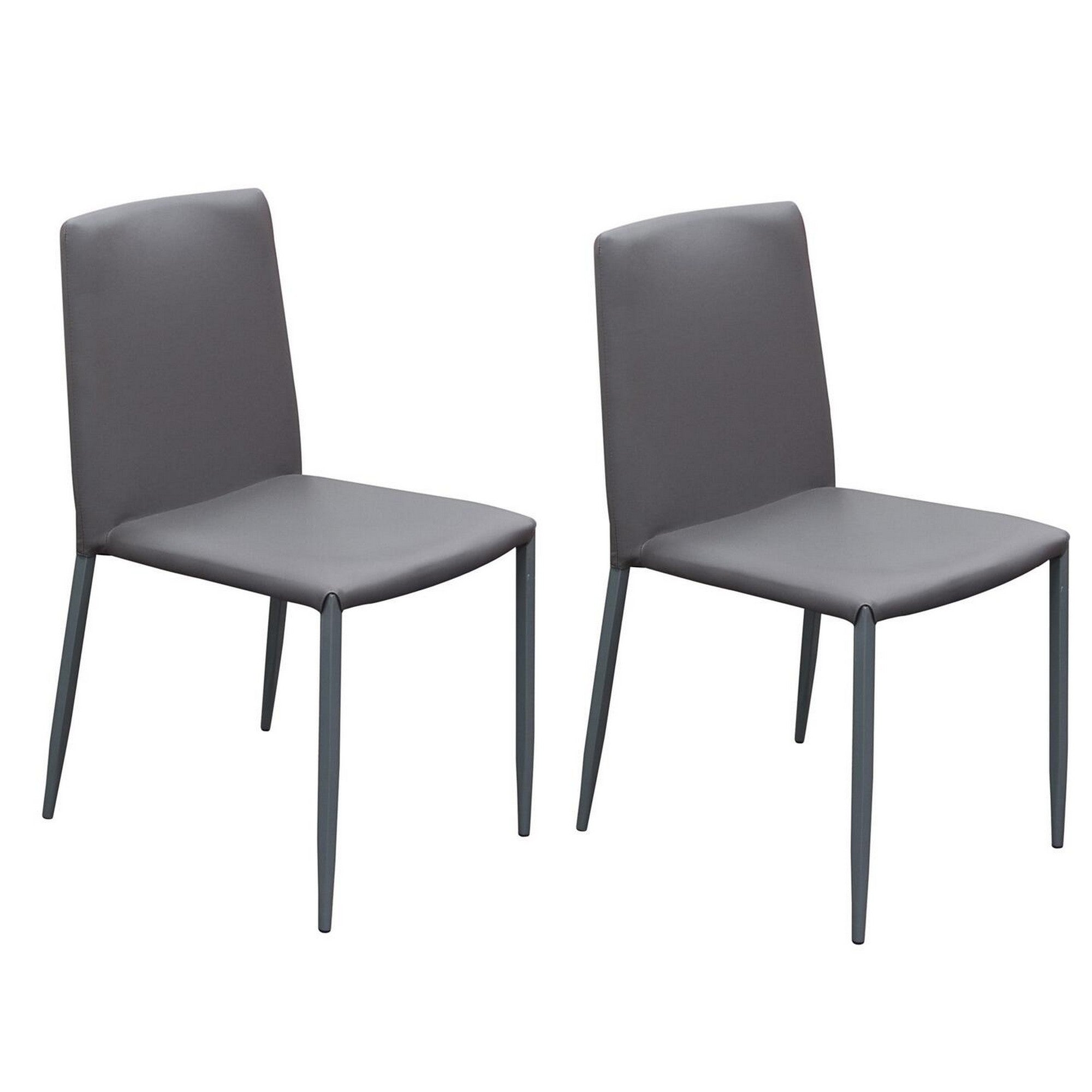 Benzara Modern Style Leatherette Upholstered Dining Chairs with Metal Tapered Legs, Gray