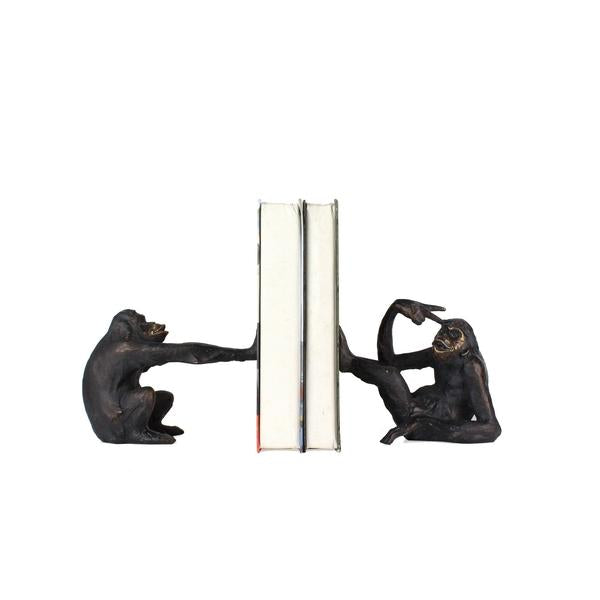 Organize your favorite books and novels easily and conveniently on this amazing bookend pair. Crafted generously from polyresin in a bronze finish, it displays two monkeys playing with each other and showcases stylish carved details.