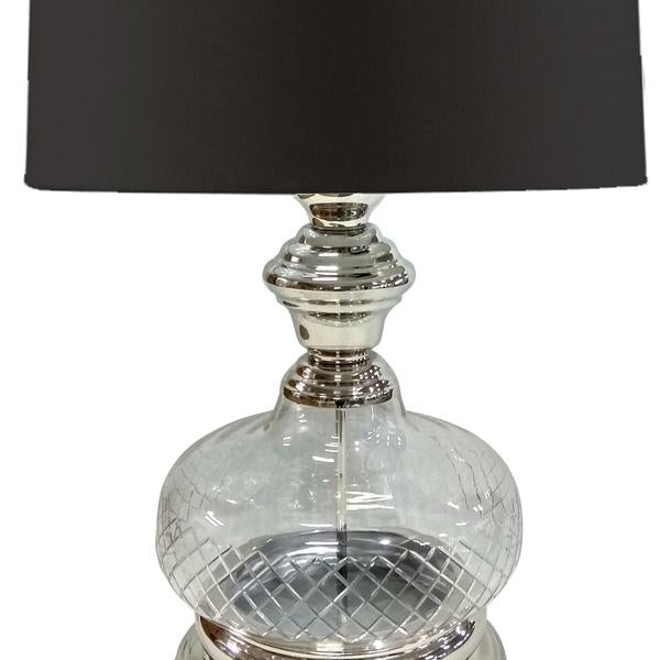 SKU - BZBM225585 Pot Bellied Shape Glass Table Lamp with Metal Tier Base Available at Uber Bazaar