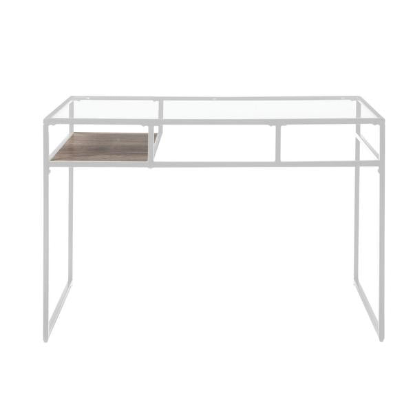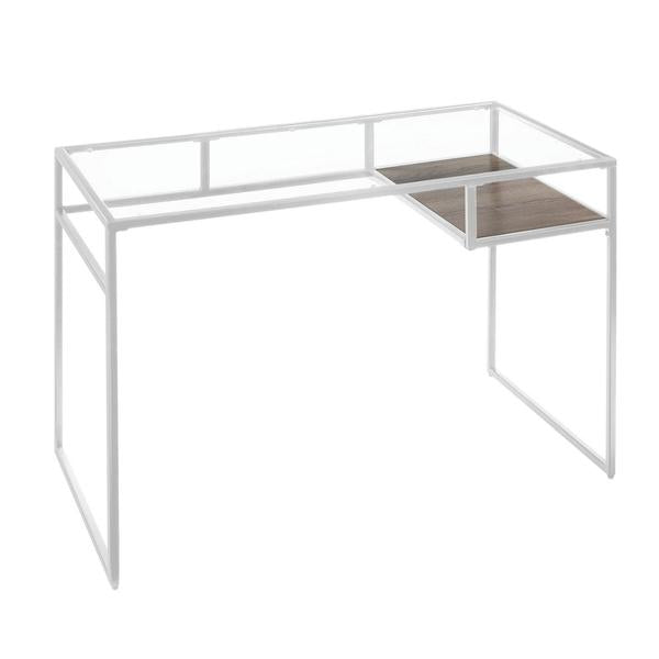 A perfect blend of industrial style with contemporary glam, this rectangular makes a great addition to your home office or study room. Exuding minimalism, it features a white finished metal frame with sled base support, featuring an open compartment with a wooden shelf. The tempered glass tabletop adds to the elegance of the table.