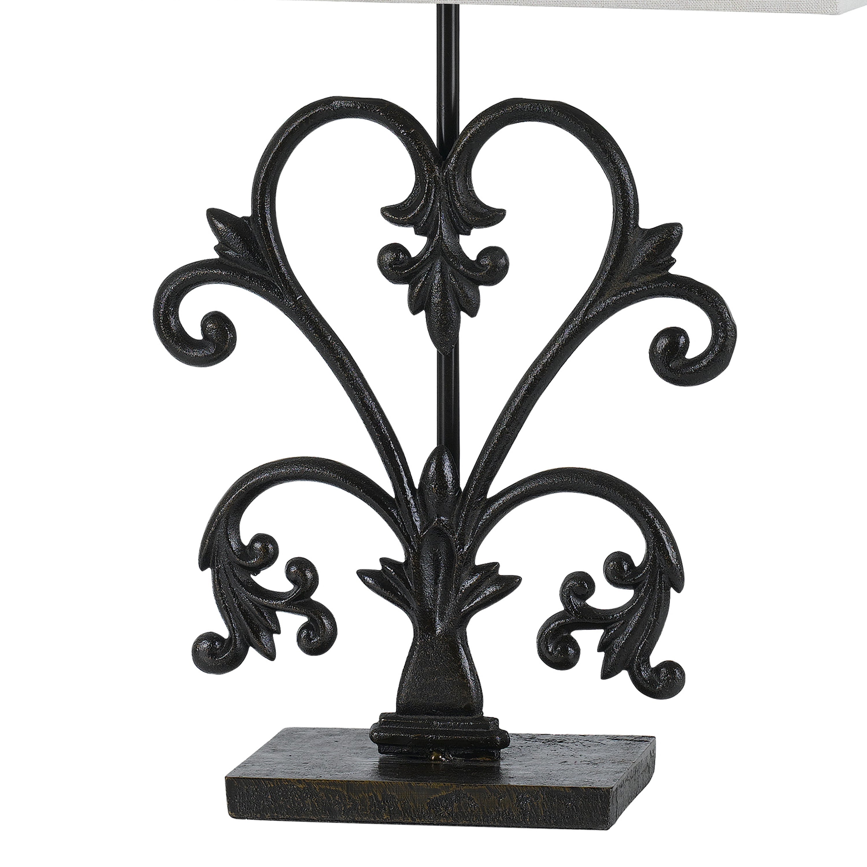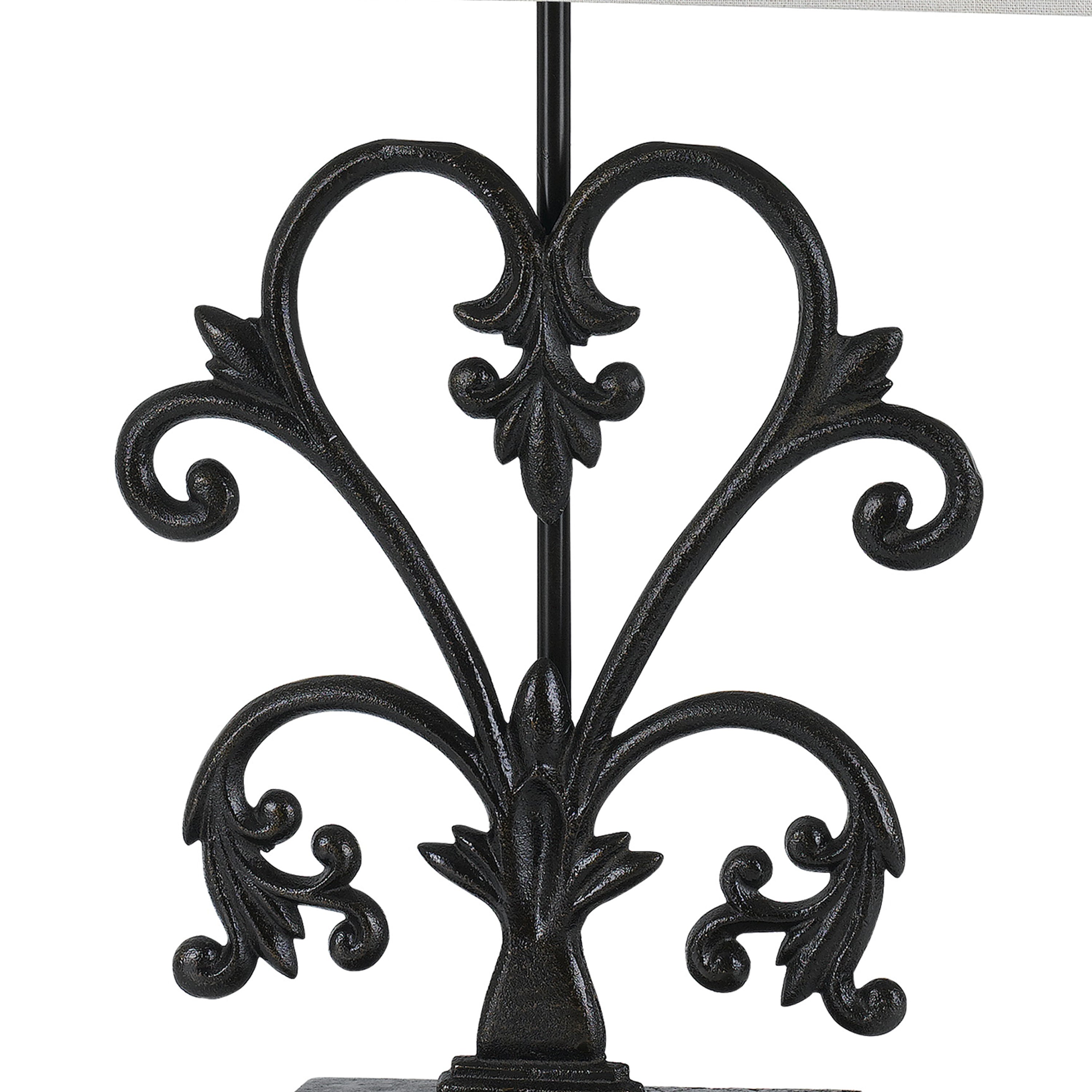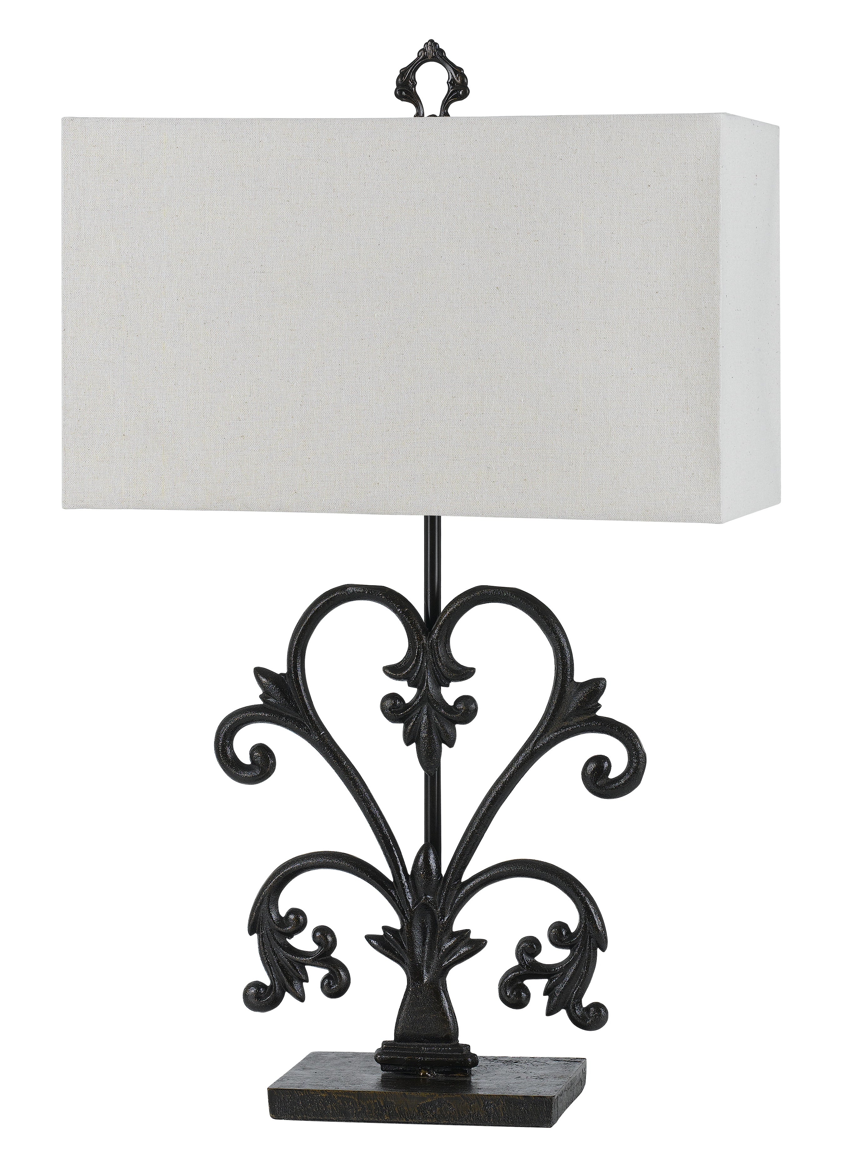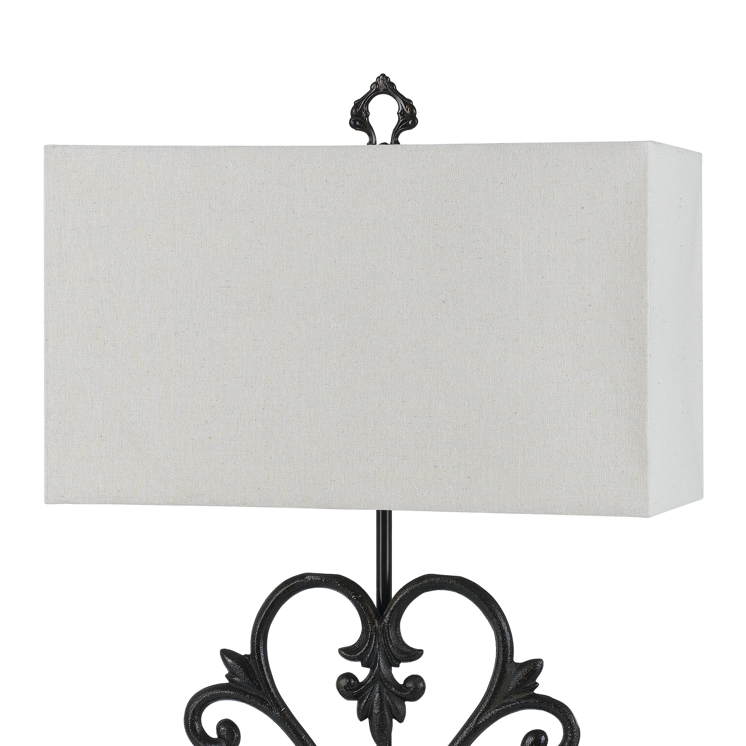 Benzara Rectangular Shade Table Lamp with ScrolLed Metal Base, Off White and Black