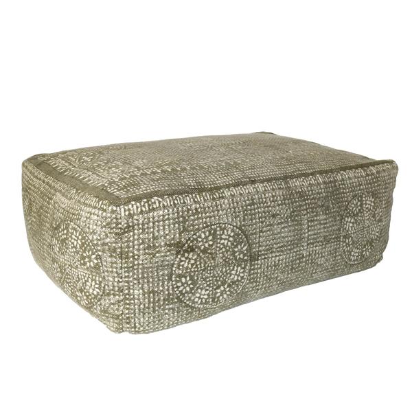 SKU - BZBM225512Rectangular Shaped Fabric Pouf with Traditional Floral Pattern Available at Uber Bazaar