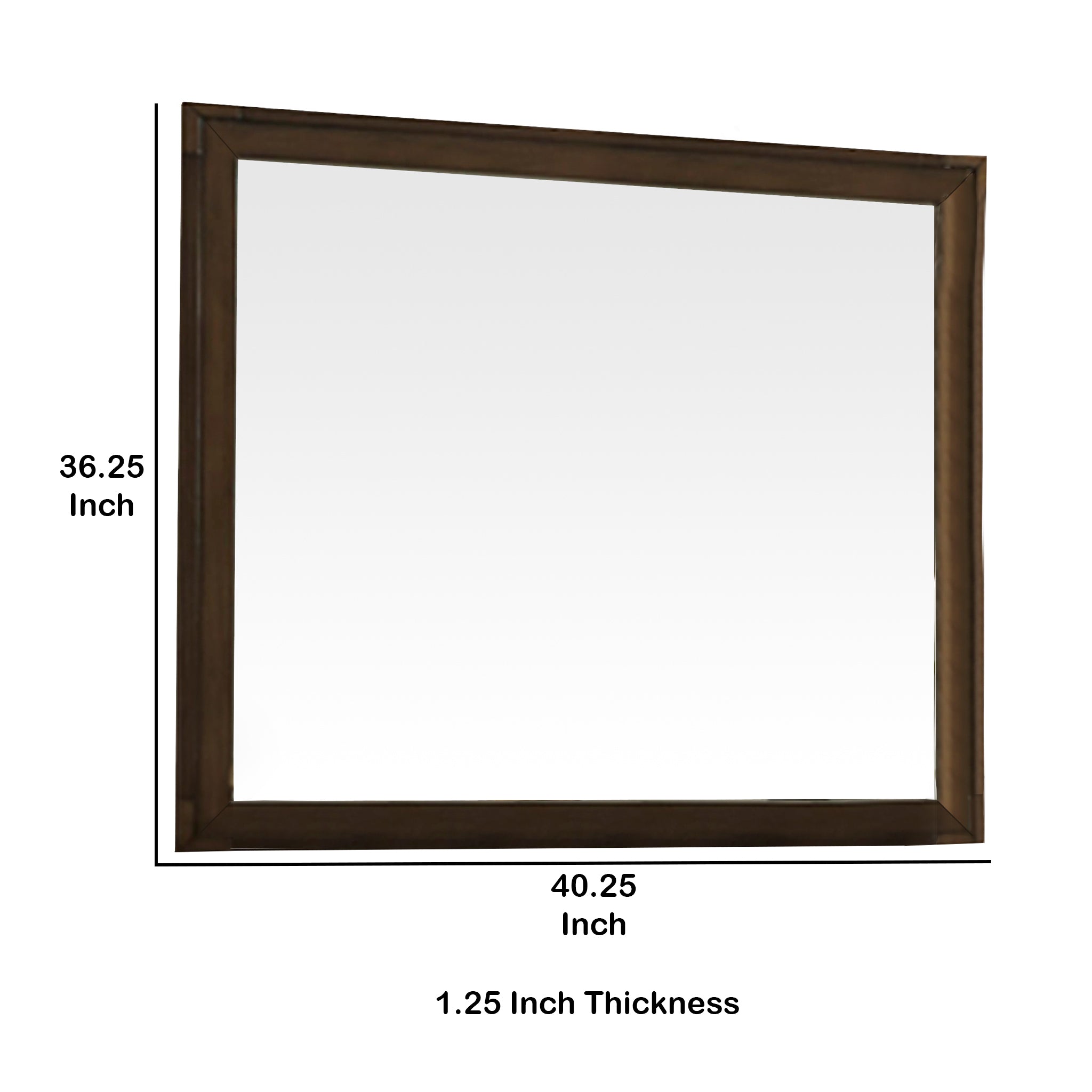 Benzara Rectangular Wood Encased BeveLed Mirror, Walnut Brown