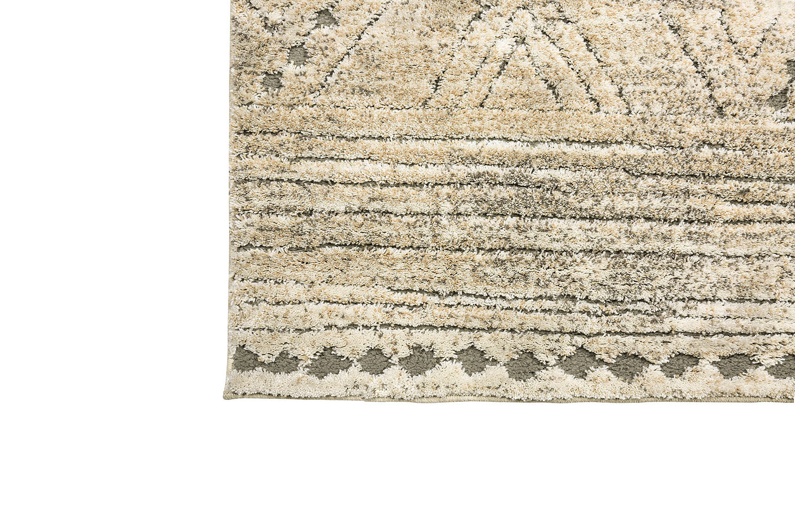 Benzara Recycled Polyester Area Rug With Geometric Pattern, Gray and Beige