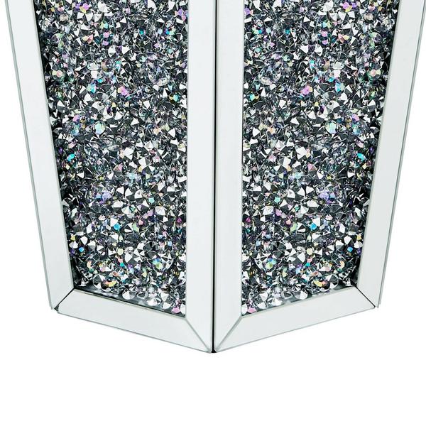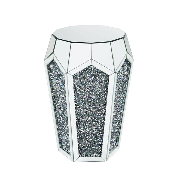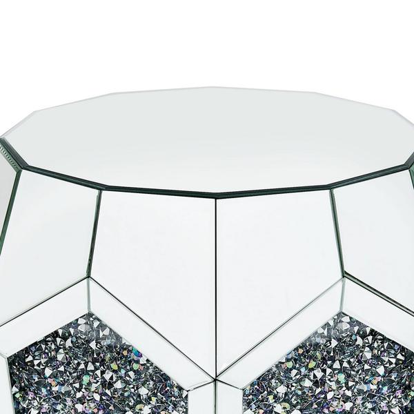 Catch the attention of your guests and visitors at your home by bringing in this beautiful end table. It features a stylish body covered with mirror panels and showcases faux gemstone accents that boosts up its charm. In incorporates a mirror top with beveled edges.
