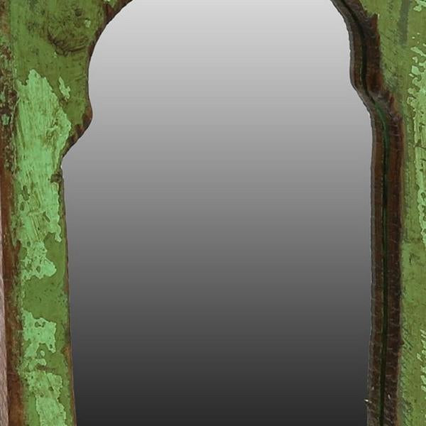 Benzara Salvaged Wooden Taj Window Frame Mirror with Hanging Rope, Green