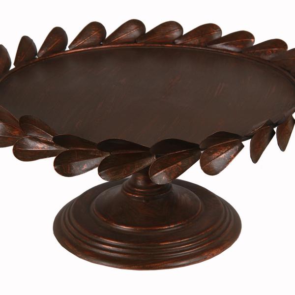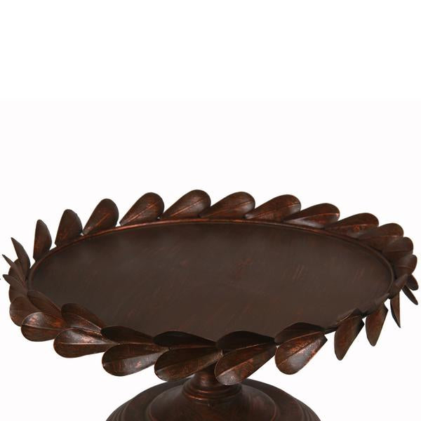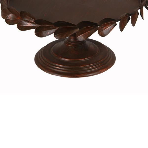 Add a traditional touch to your home interior with the addition of this tray featuring elegantly crafted leaf motif on the top and is supported on a pedestal base. It is completely constructed from metal to provide a durable experience and is accented with copper finish. It can be placed atop your console table, accent table and mantelpiece along with other traditional decor items to accentuate your interior.