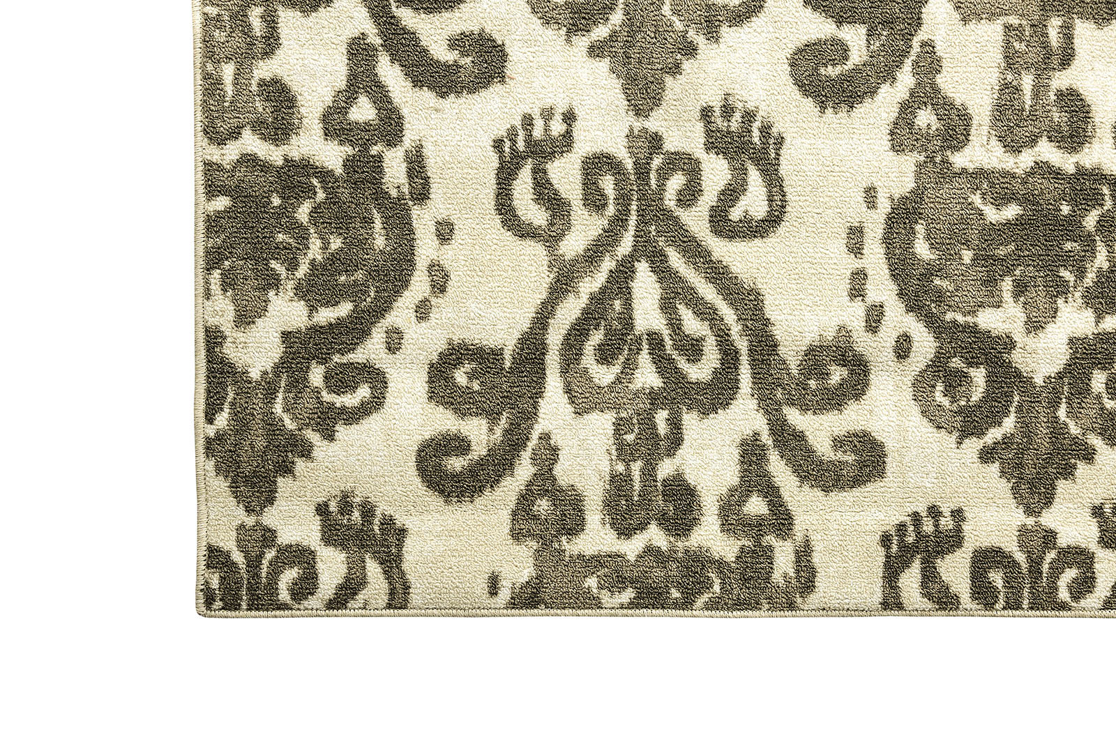 Emanating a classic and vintage appeal this area rug is enhanced with soft pastel shade in Ivory and brown. With low height pile, the rug still offers a feathery smooth touch and feel to your feet. Although subtle and understated this transitional rug with traditional floral and symmetric patterns will bring a modern vibrancy to any contemporary decor. Trendy and in fashion this transitional rug with distressed appearance is fashioned in nylon with Latex Backing for firmness and stability.