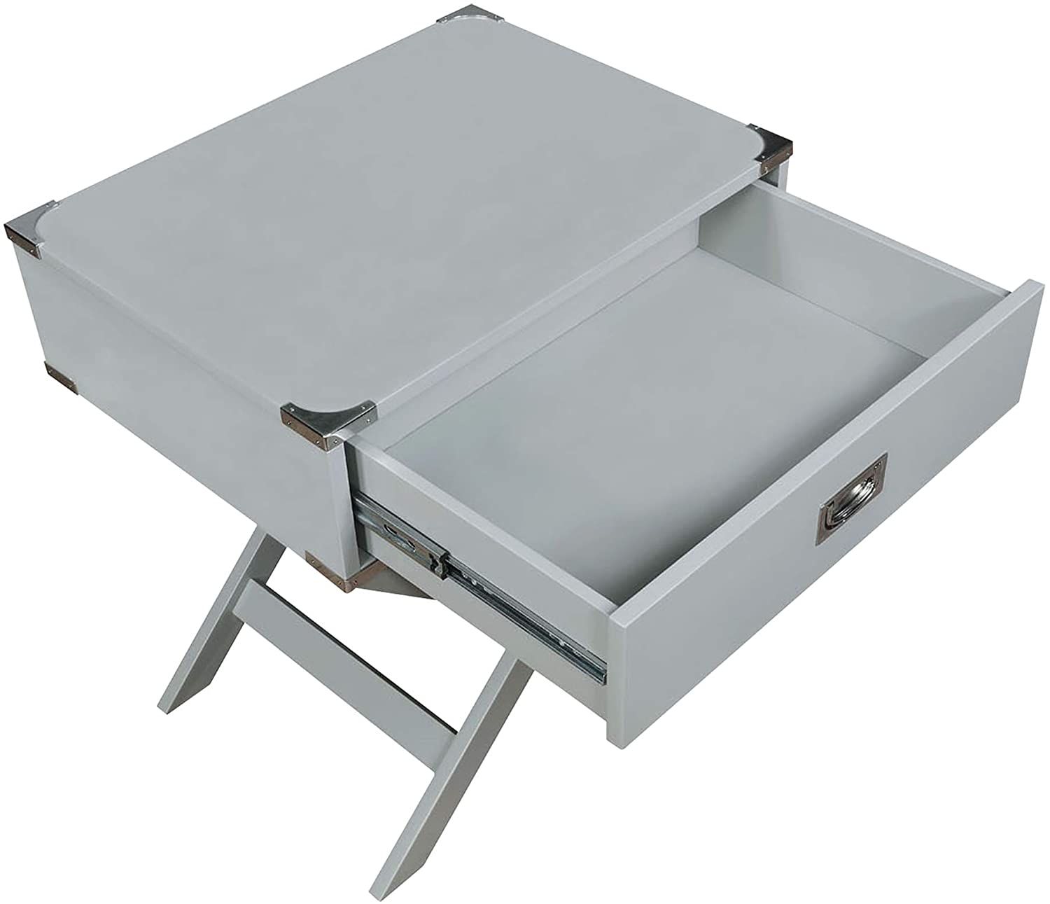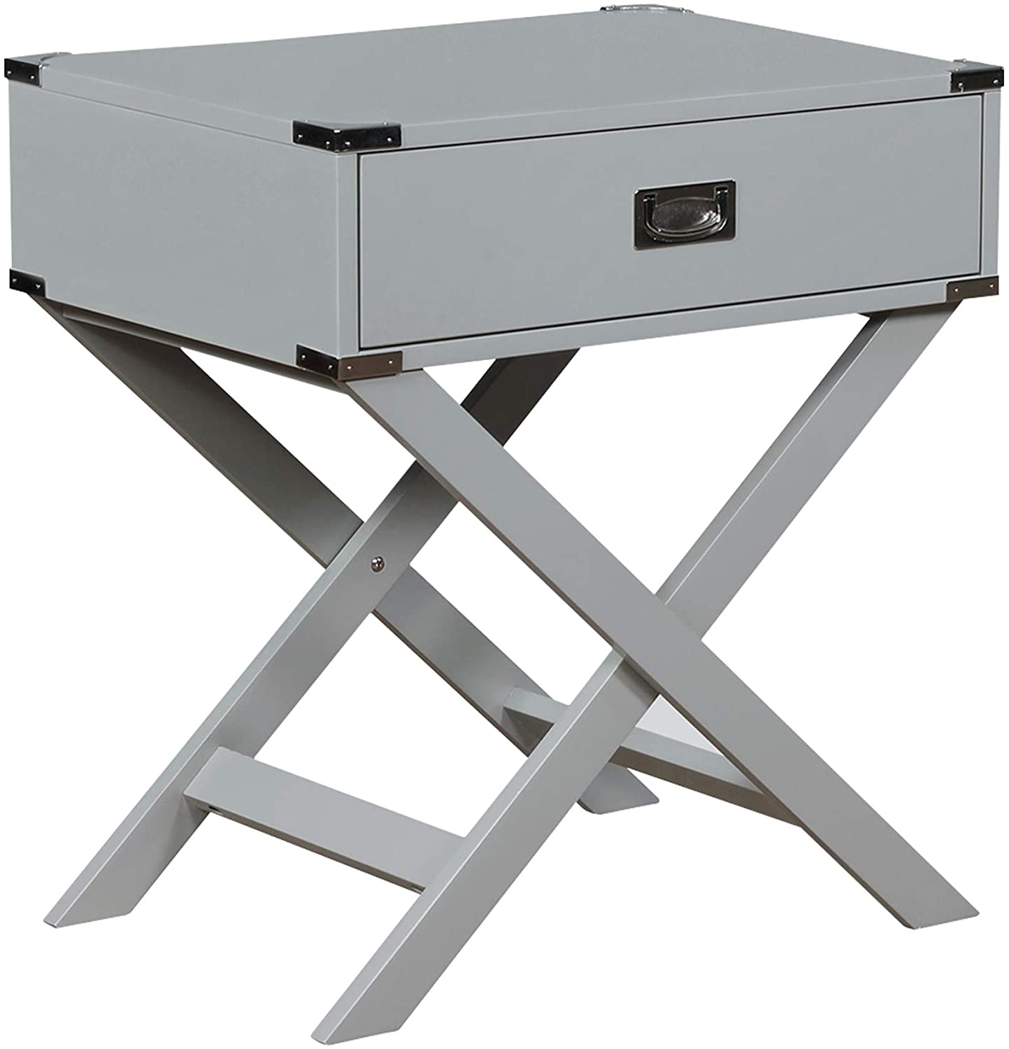 This transitional style furniture will prove to be a great addition to the living space of your house. This chairside table has been made from wood and comes in gray color finish. The chairside table has been supported on cross base legs and it comes with one wide drawer.