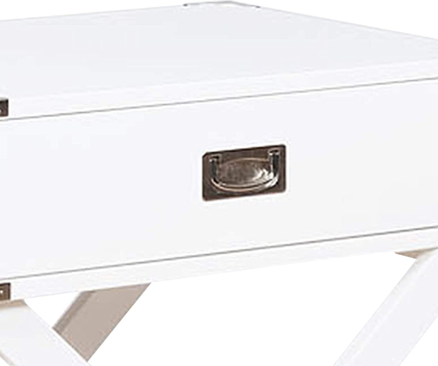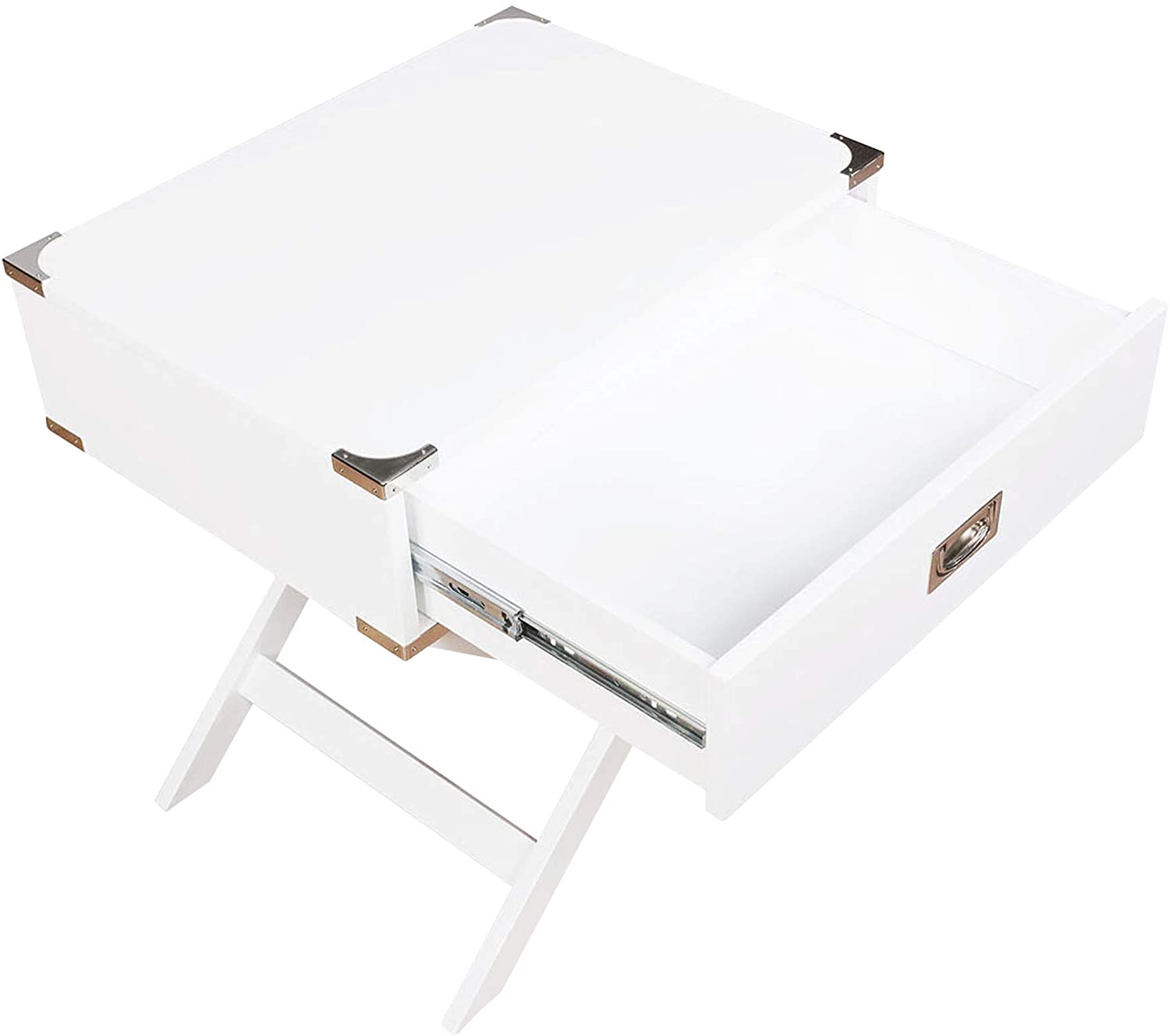 This transitional style furniture will prove to be a great addition to the living space of your house. This chairside table has been made from wood and comes in white color finish. The chairside table has been supported on cross base legs and it comes with one wide drawer.