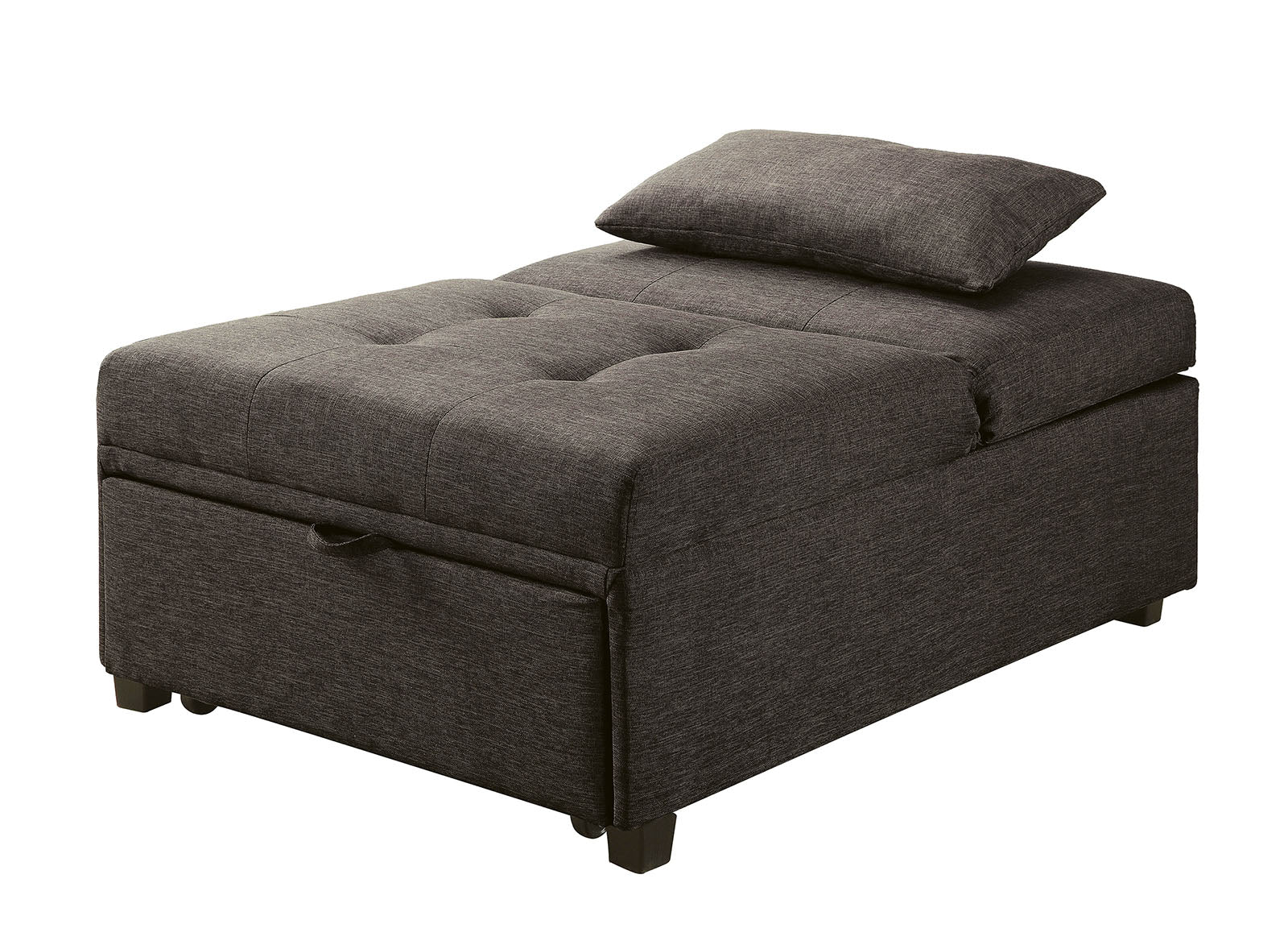 Grab the attention easily from the people with this folding ottoman with storage. This dark Gray linen like fabric upholstered ottoman features tufted detail and can be work as a multitude of items like chaise sofa bed while the back lift option makes it works as an accent chair and pull-out the under stored extender to use it as a bed. Button tufted padded seat provide comfortable seating.