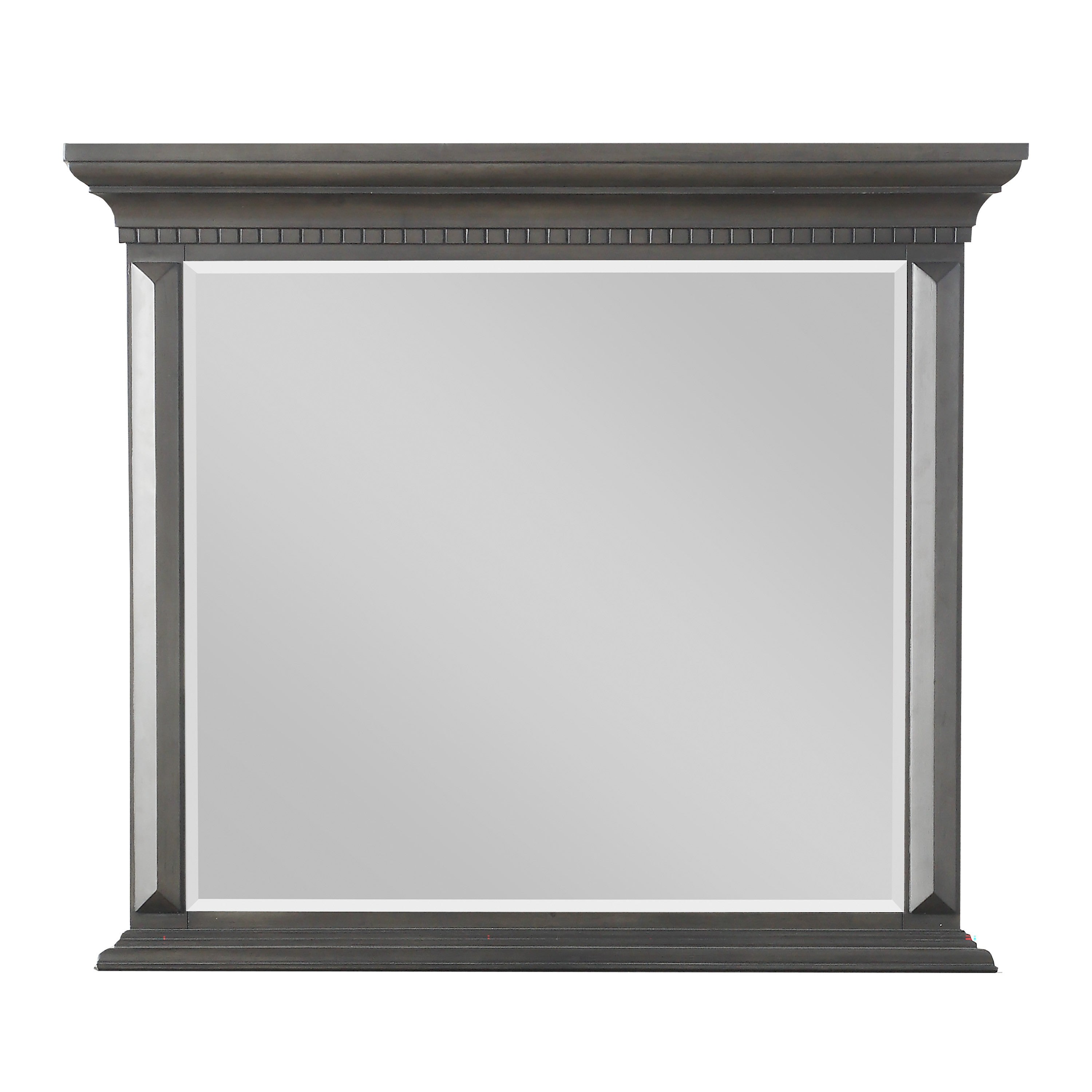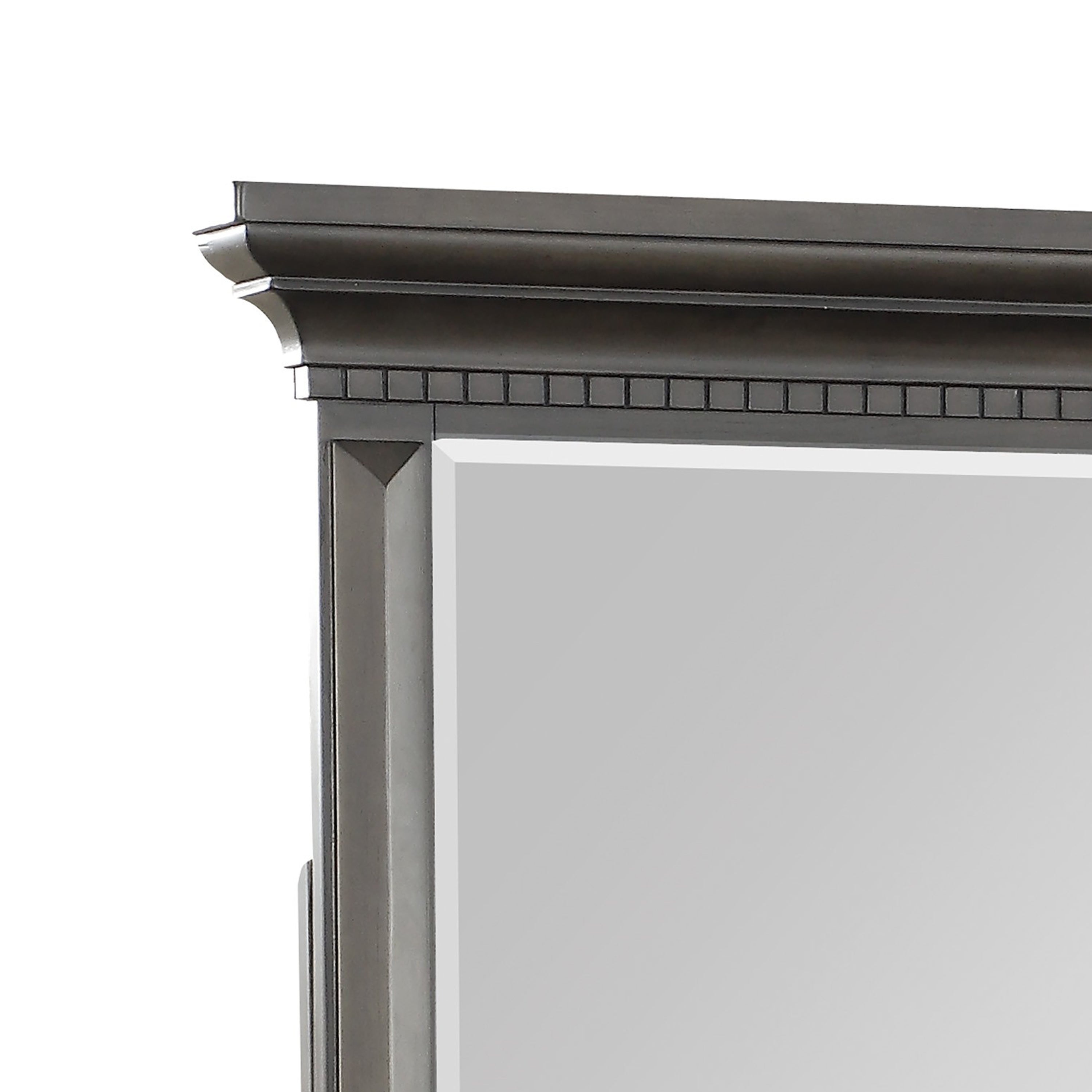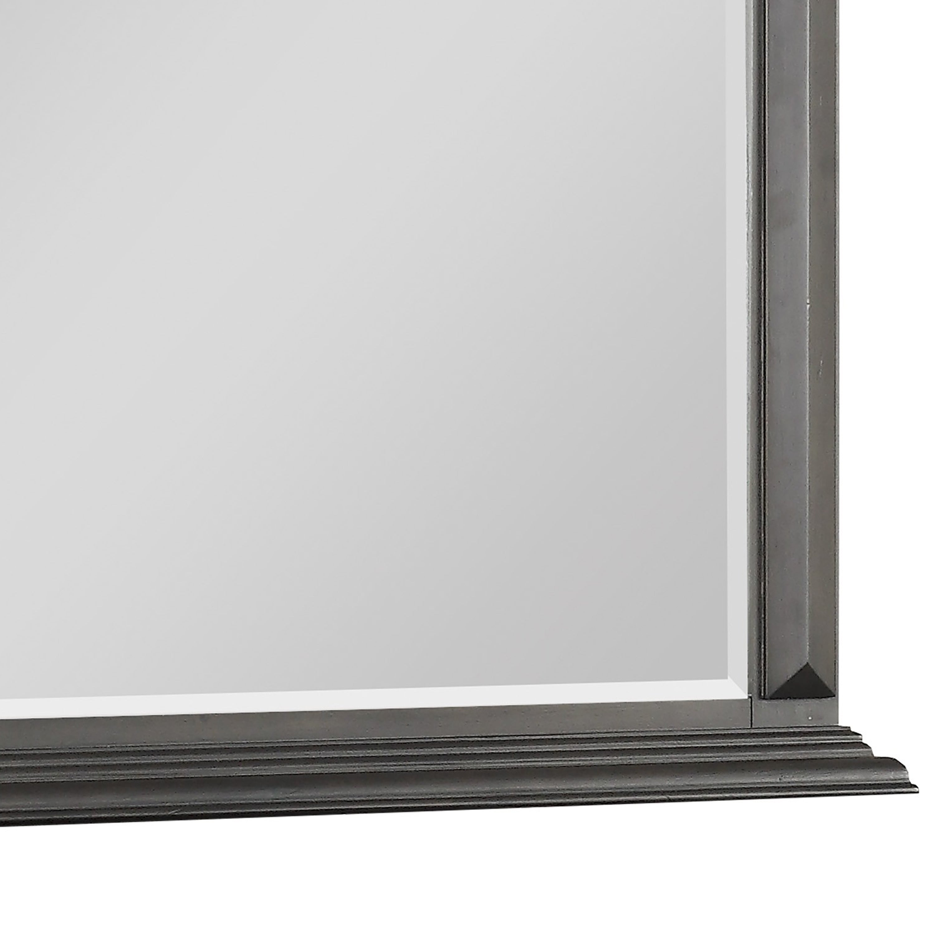 Benzara Wooden Mirror with Raised Edges and BevelLed Top, Gray