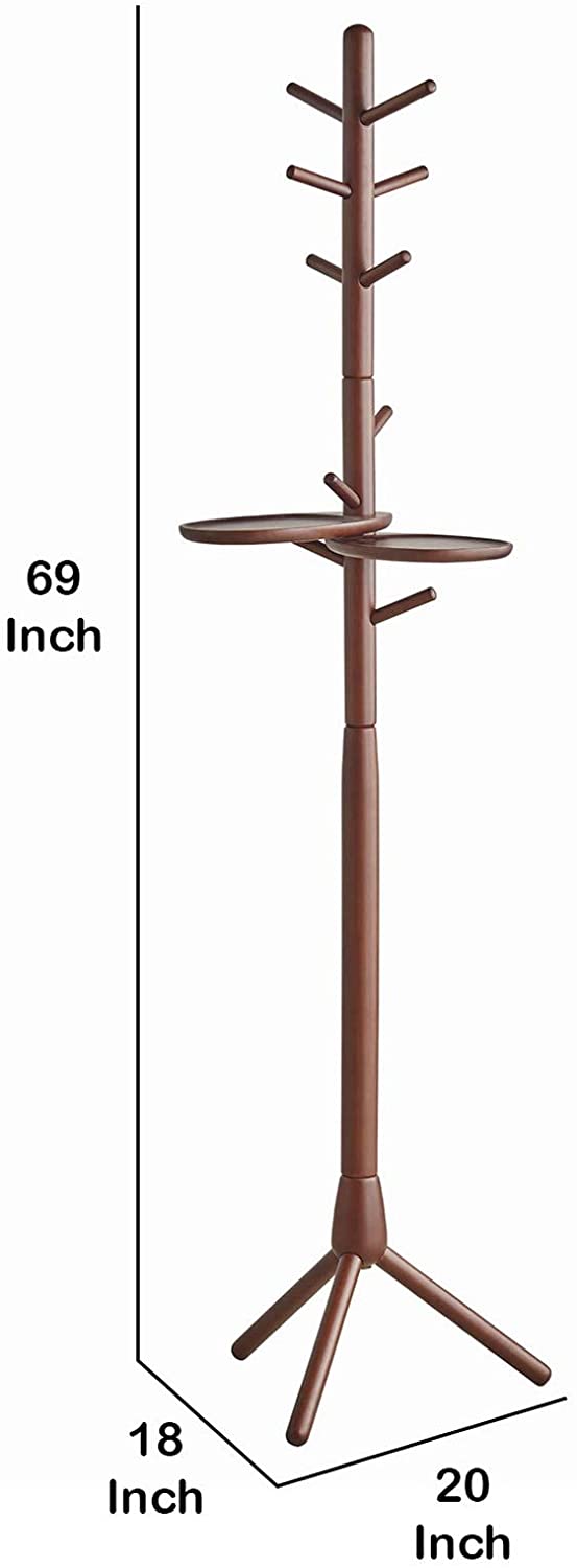 Benzara Wooden Tree Design Coat Rack with 10 Holders and Tripod Base, Dark Brown