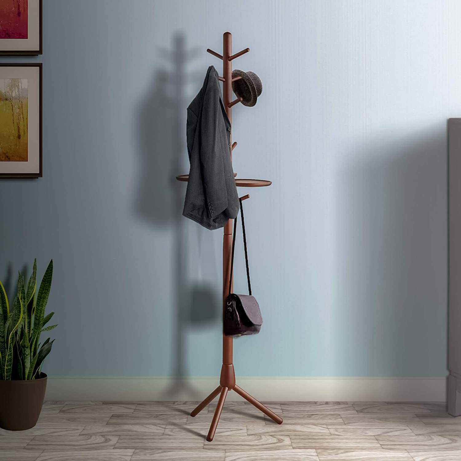 SKU - BZBM225423Wooden Tree Design Coat Rack with 10 Holders and Tripod Base Only at Uber Bazaar