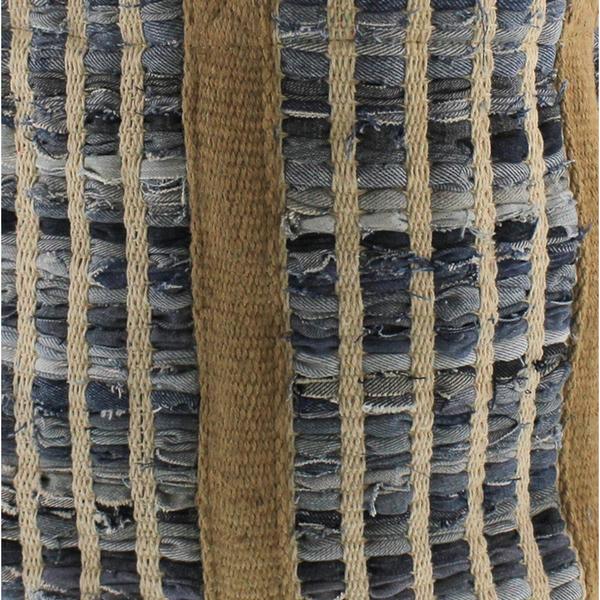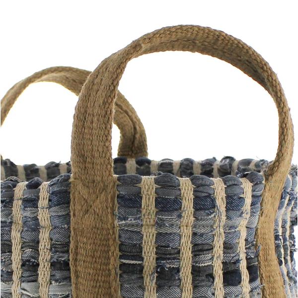 Benzara Woven Denim Basket with Two Handles, Blue and Beige
