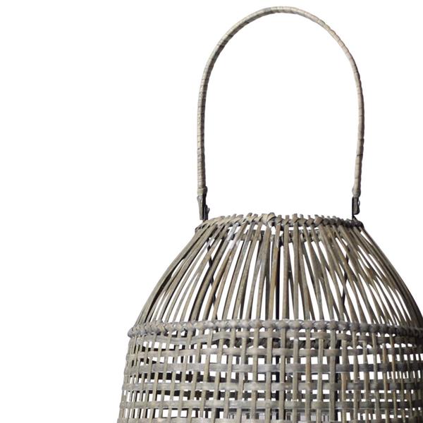 SKU - BZBM229726Woven Rattan Frame Lantern with Glass Hurricane Sold by Uber Bazaar