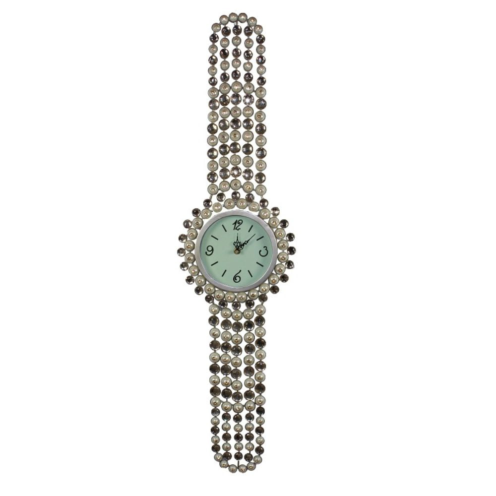 Bring the bare walls alive with this wonderful metal wall Decor. It will add beauty and change the overall look of your room space. In shape of a wristwatch, it has a round dial in pastel green, with the outer circle of the dial and straps in pearls. The numbers and hands of this metal watch Decor is black in color that gives it a classy feel. You can place it on the wall your living room, drawing room, hallway, entryway or patio. This wall Decor will seize attention for people for sure.