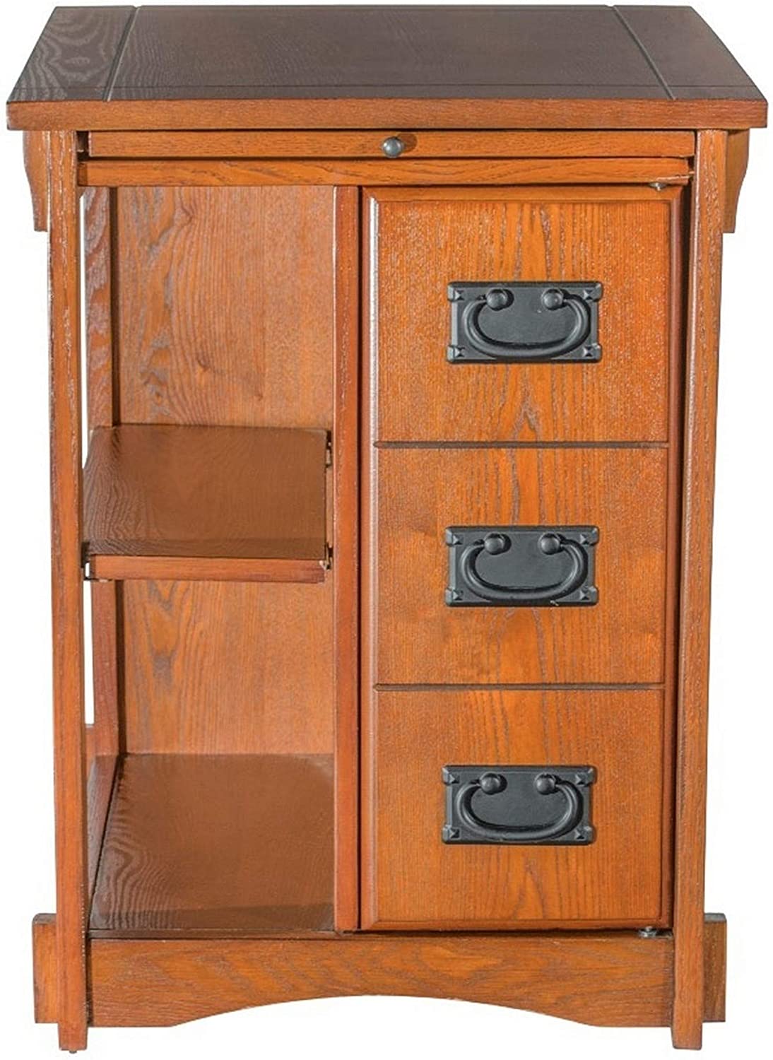 Benzara 1 Storage Wooden Cabinet Table with Faux Drawer Front, Oak Brown