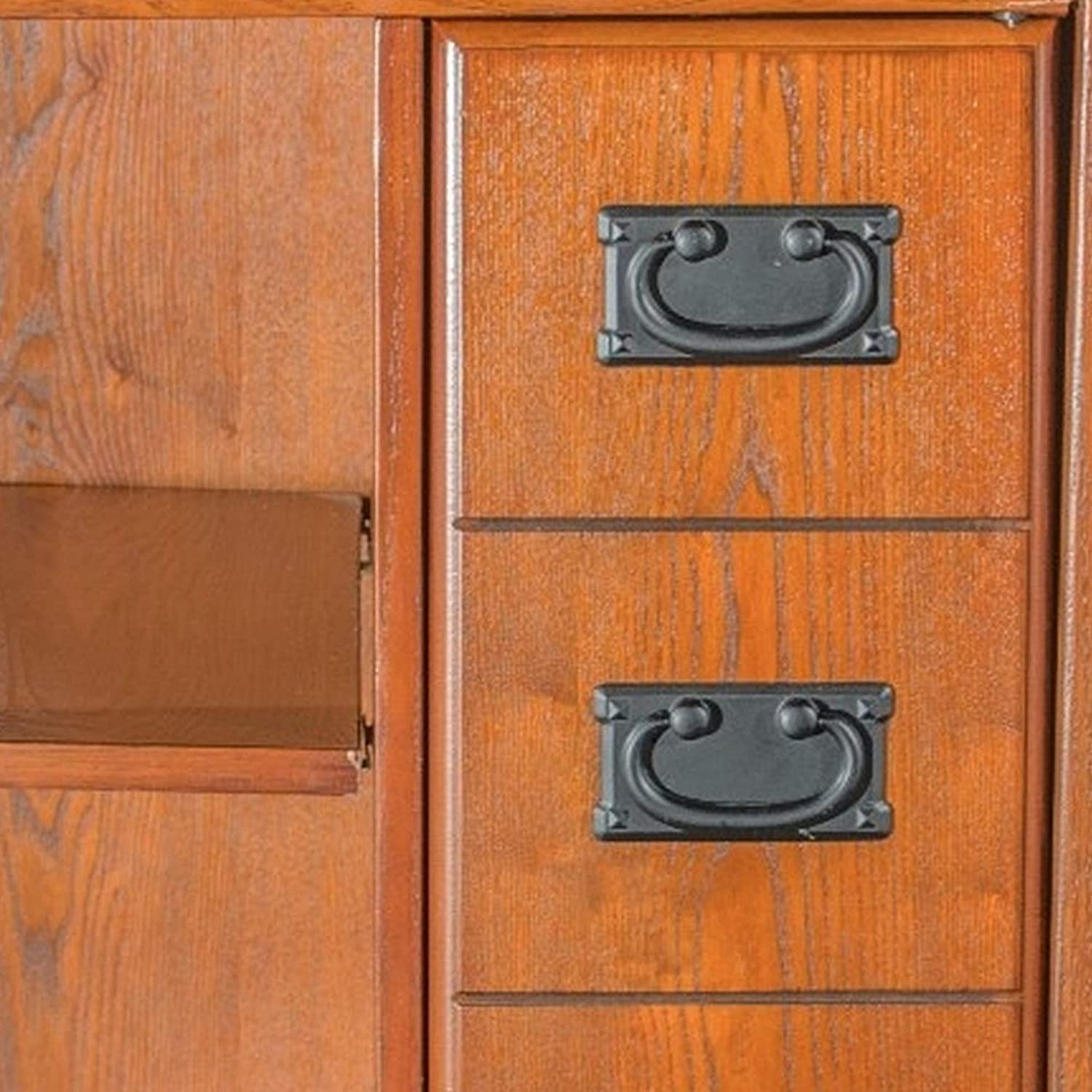Add this multifunctional storage option at your home to enhance the look of your living room and also avail utmost convenience. This cabinet table constructed from sturdy solid wood is equipped with a storage showcasing faux drawer front design, 1 pull out rack and 1 open shelf storage along with 1 magazine rack at the back. The wood grain details adds to the subtle charm of the piece.