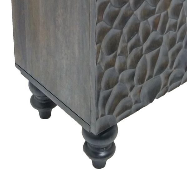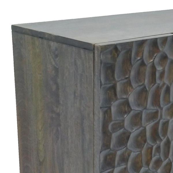 Benzara Geometric 2 Door Carved Wooden Cabinet with Turned Legs, Gray Oak