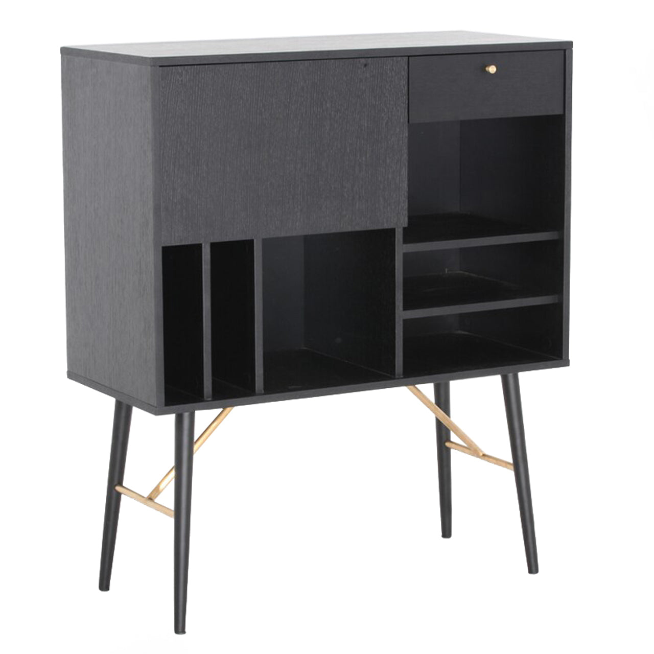 Be a competent organizer with this Wooden constructed buffet, featuring 3 open shelves, 3 compartments and 1 drawer. Supported on metal tubular legs with braces support, it has hinged door storage, for extra space. Incorporated with metal knobs, its has cut out hole for wire management.