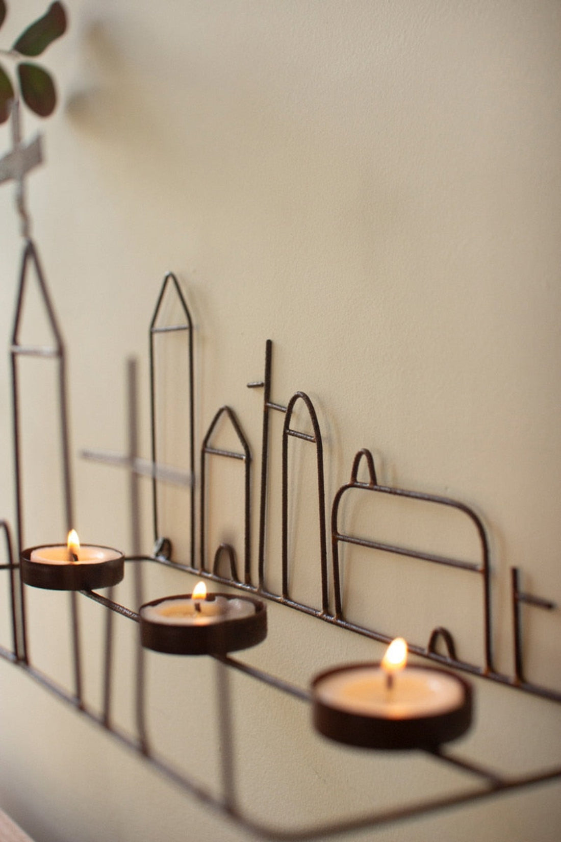 Slim Wire Wall Tealight Sconce – Distressed Metal 12" by Kalalou