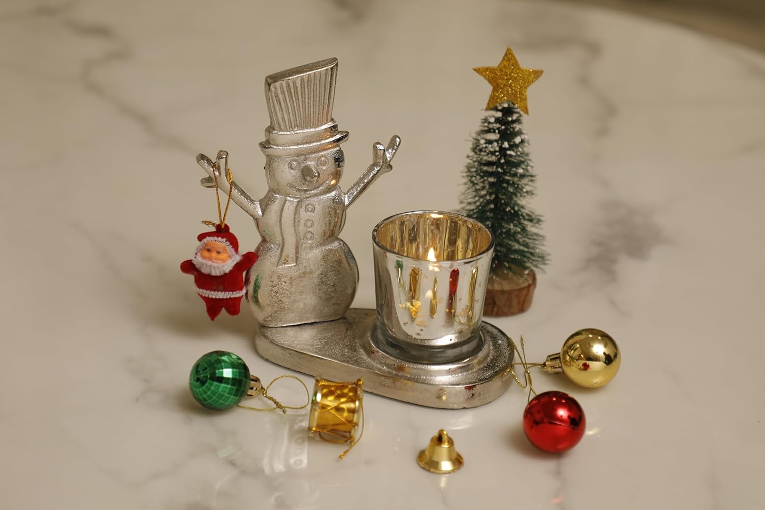 SKU - PD-HD39943Snowman Tea Light Candle Stand with Glass Votive for Tabletop Living Room Office/Home Decoration