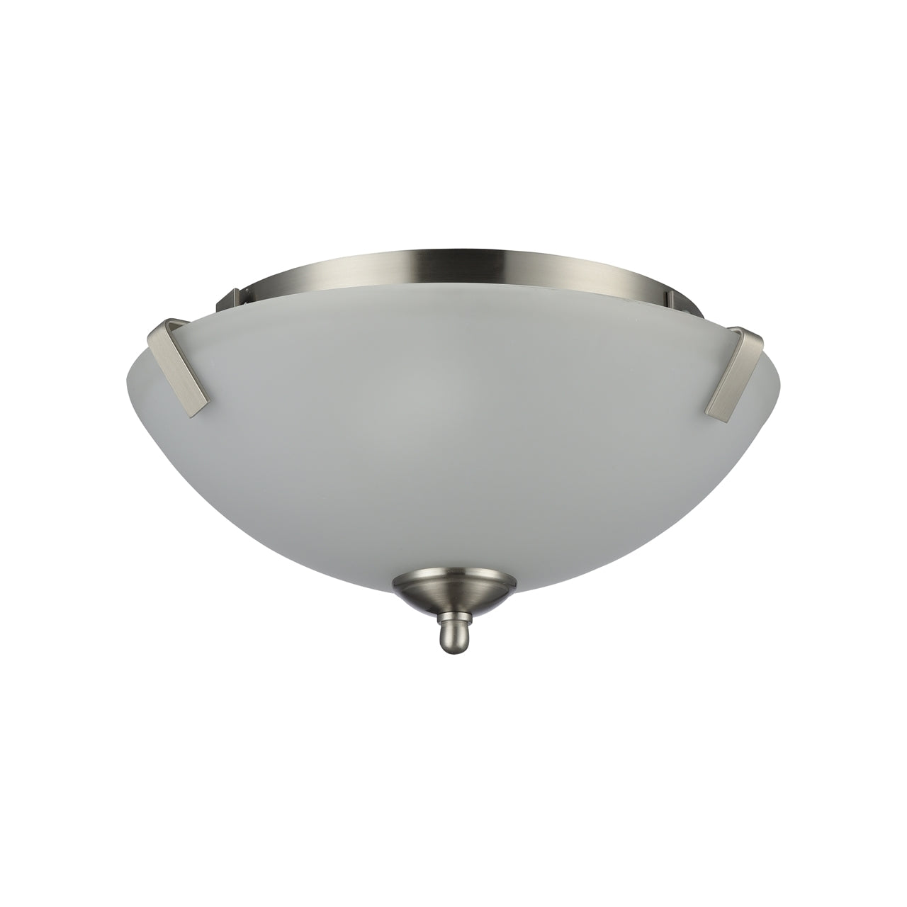 The Chloe Lighting Gurli flush‑mount fixture artfully blends smooth brushed nickel with a clean, transitional silhouette—ideal for spaces that bridge classic and contemporary design. At 14″ in width, this two‑light ceiling light casts a gentle, ambient glow through its opal glass shade, creating a soft, warm atmosphere. Its sleek metal finish and minimalist form make it a perfect fit for entryways, hallways, closets, bedrooms, or bathrooms, especially where a low‑profile fixture is desired. The Gurli offers a timeless look that enriches any décor with underplayed elegance and functional lighting.