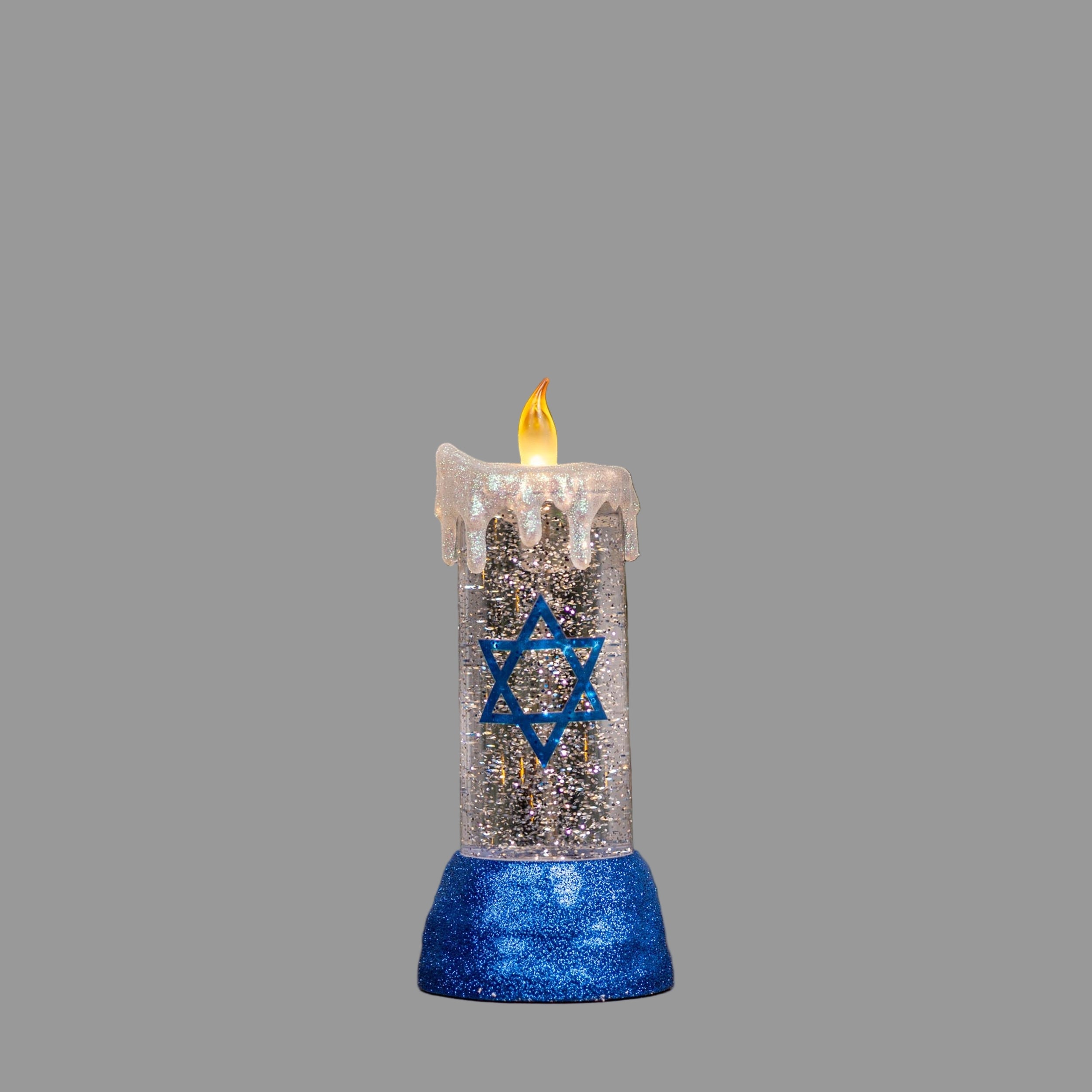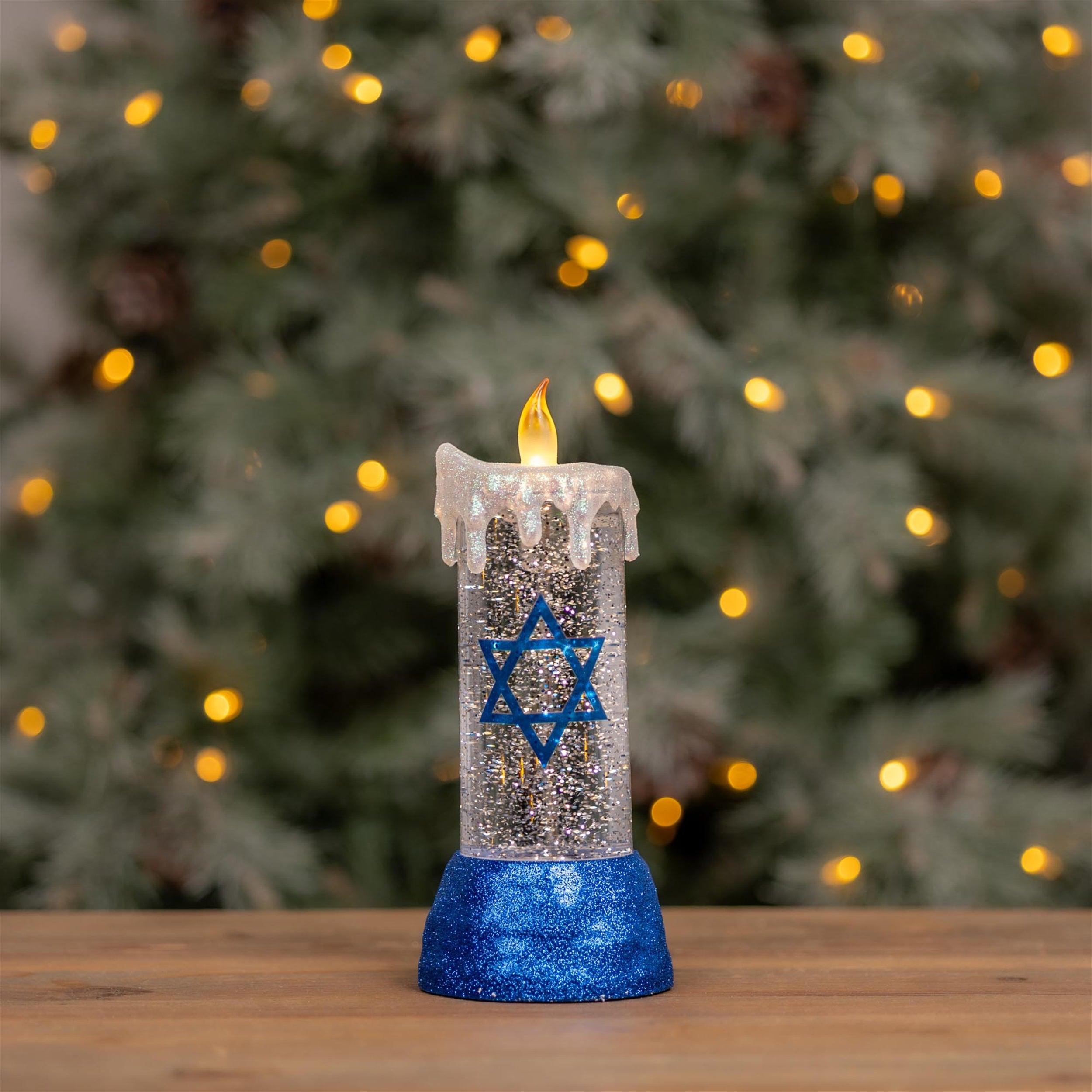 Hanukkah Candle Plastic Snow Globe 9.5" LED Glitter Swirl Decor Piece by Melrose