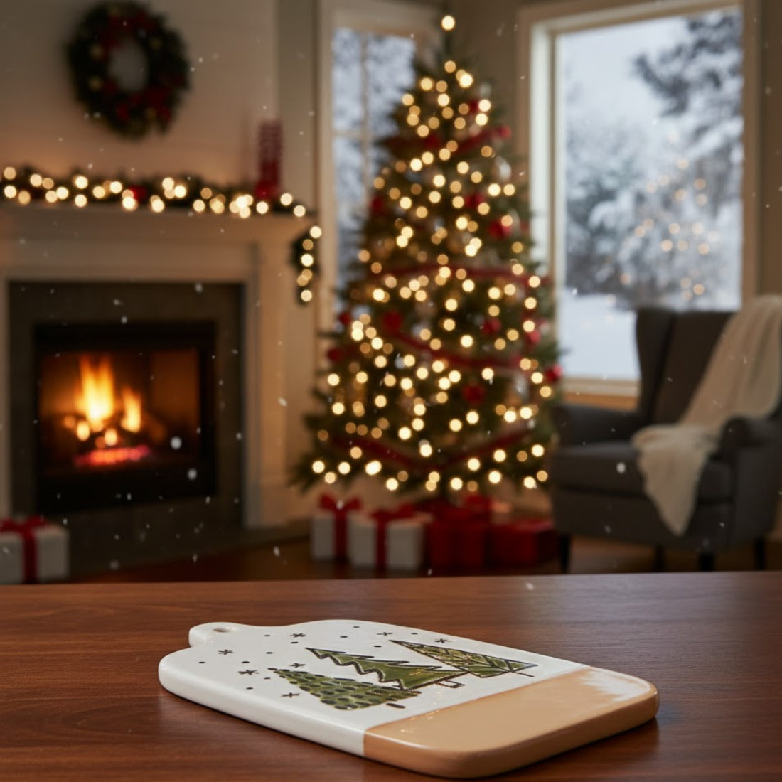 Festive Pine Cutting Trays, Ceramic – 6.5 inch Holiday Kitchen Set of 4 by Melrose