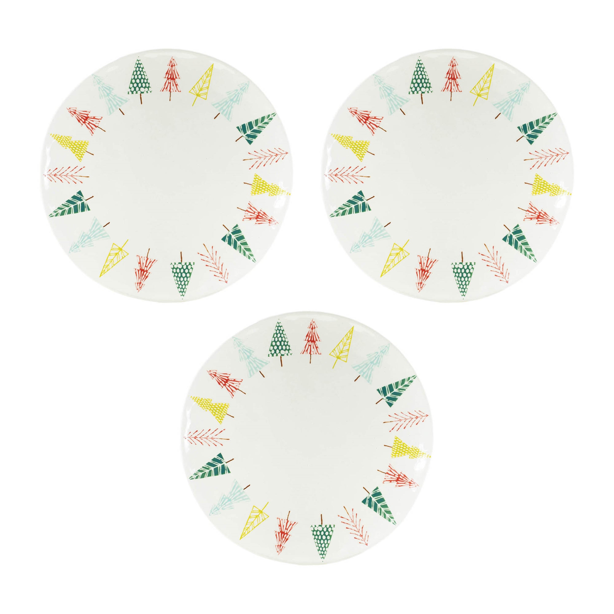Ceramic Pine Tree Platters (Set of 3) – 11" Round Christmas Serving Plates for Snacks & Treats, by Melrose